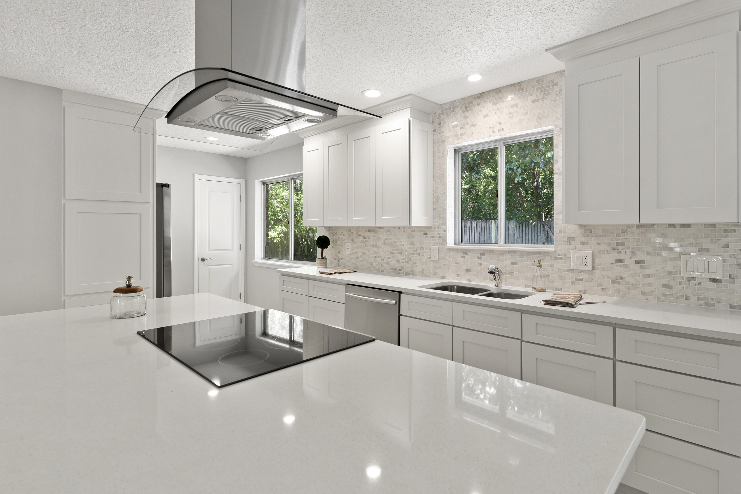 On their first morning, sunlight spilled through the window and bounced off the Glacier White cabinetry. The room came alive, airy and free.