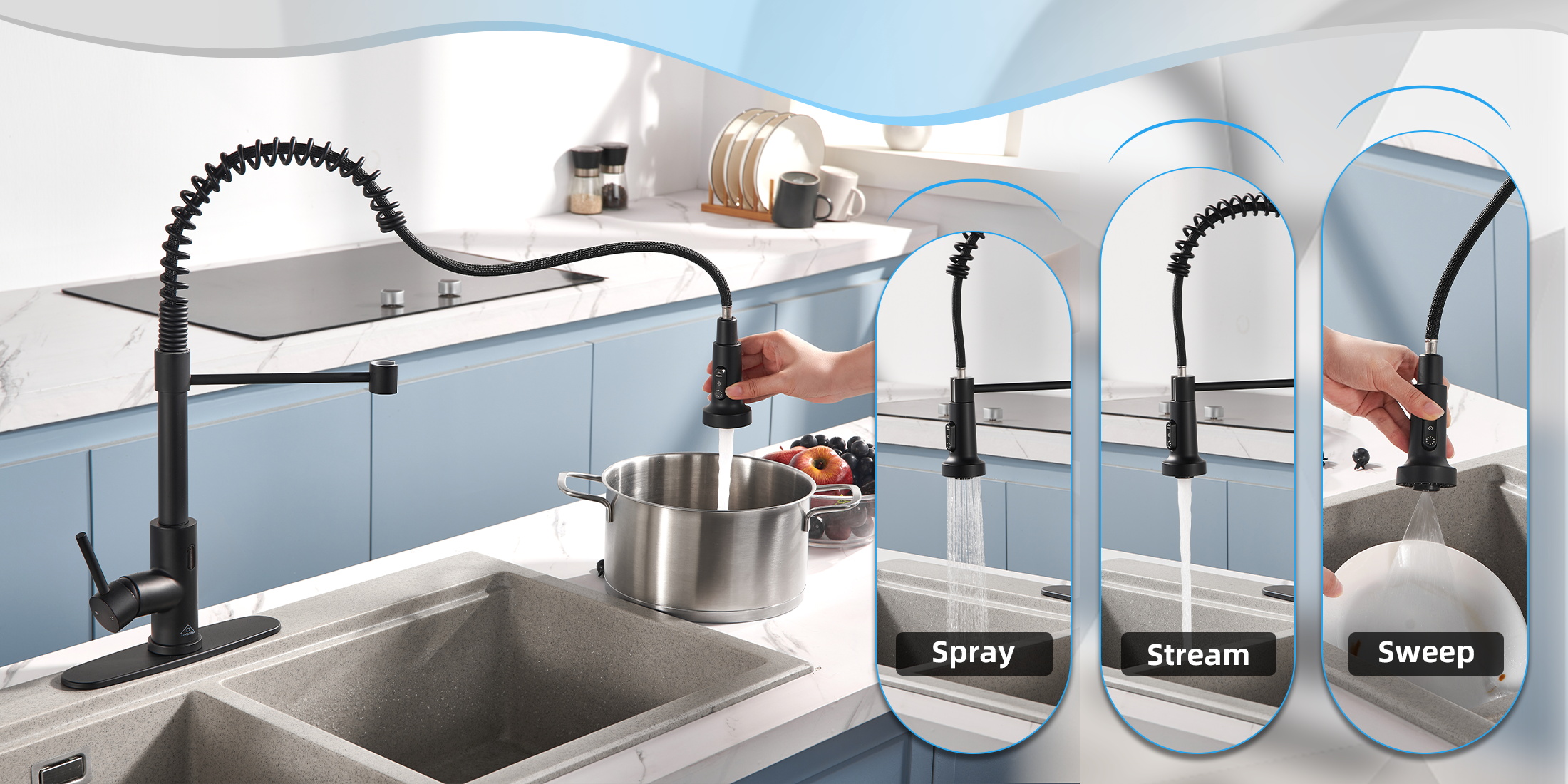 Think carefully about actual sink usage. Do you regularly wash oversized cookware? Bathe small children? Give pets frequent baths? A high-arc swivel faucet that rotates 180 to 360 degrees makes cleaning every corner of your sink effortless and provides valuable vertical clearance for these tasks. Pull-down or pull-out spray heads with multiple stream patterns add versatility for rinsing dishes, cleaning produce, and washing the sink itself. The right faucet type can dramatically reduce time and effort spent on routine kitchen chores.