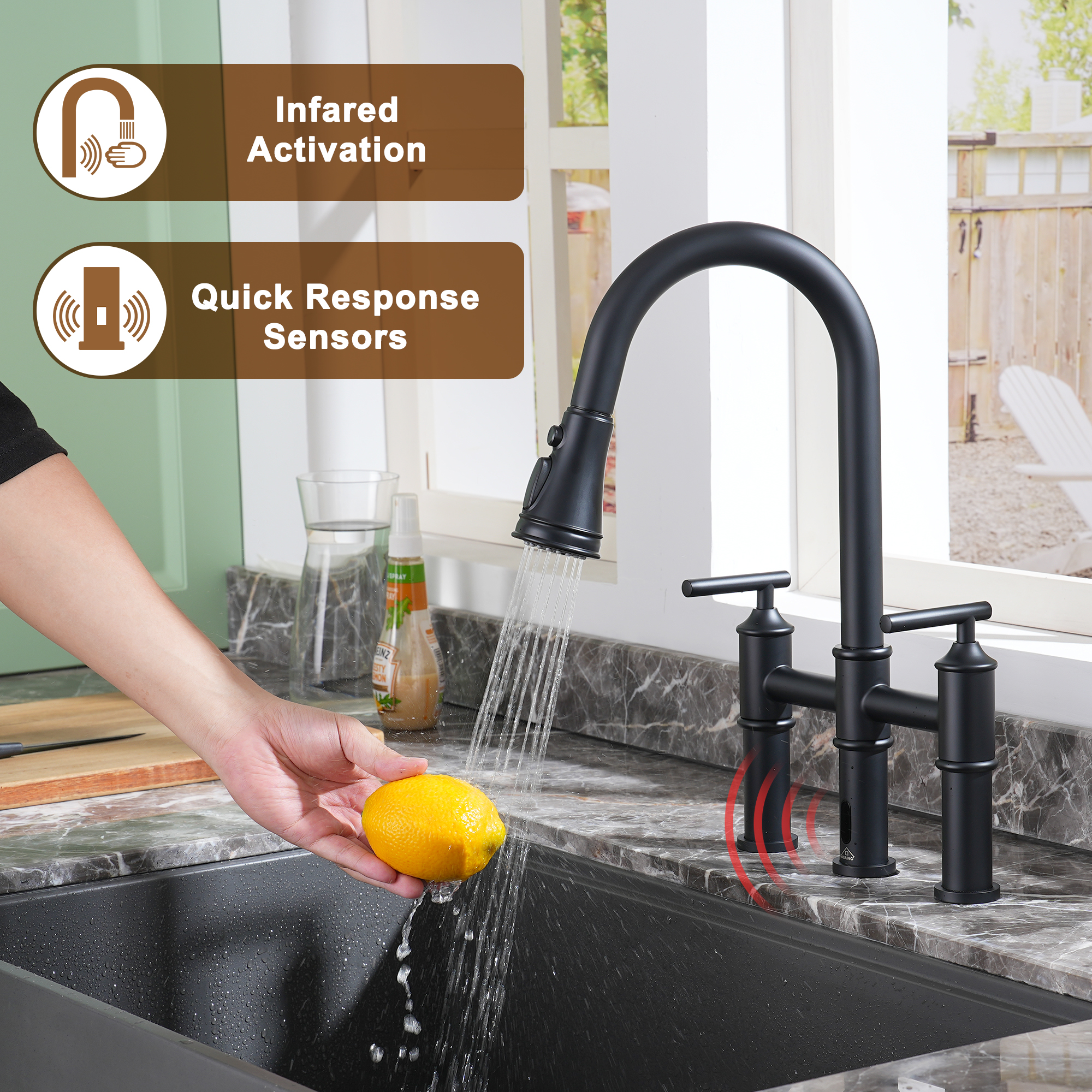 • Infrared sensor function that has been extensively tested for sensitivity, elevate your kitchen with our large selection of double kitchen faucets now