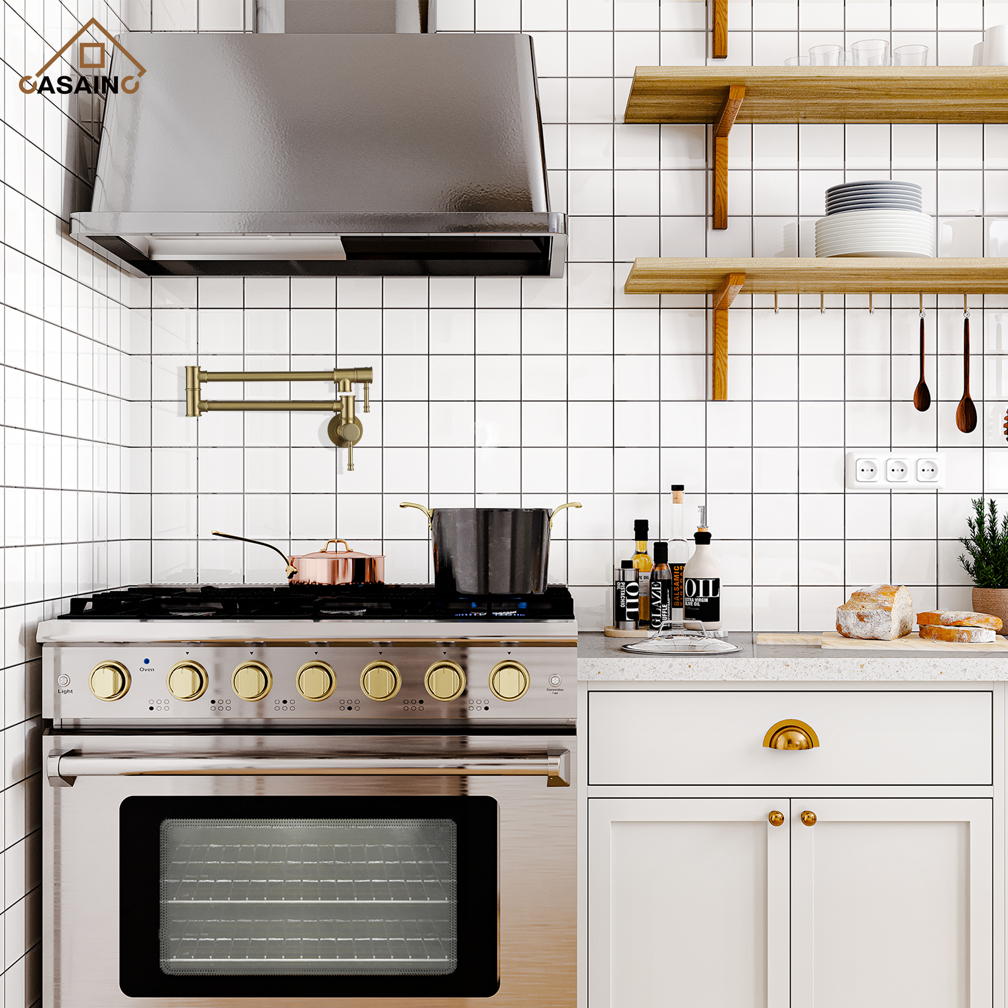 Space-Saving Wall-Mounted Pot Filler with Double Handles and Folding Design