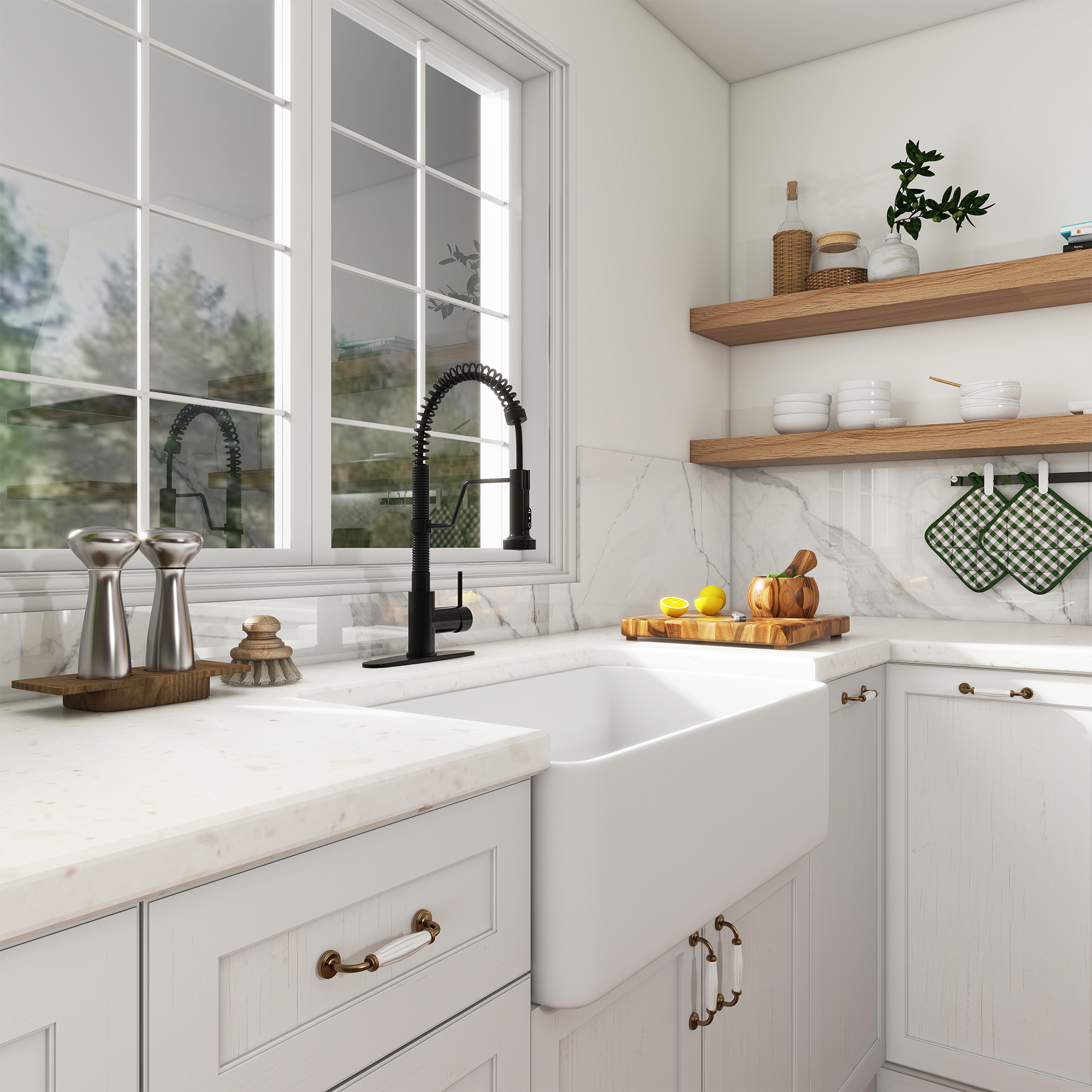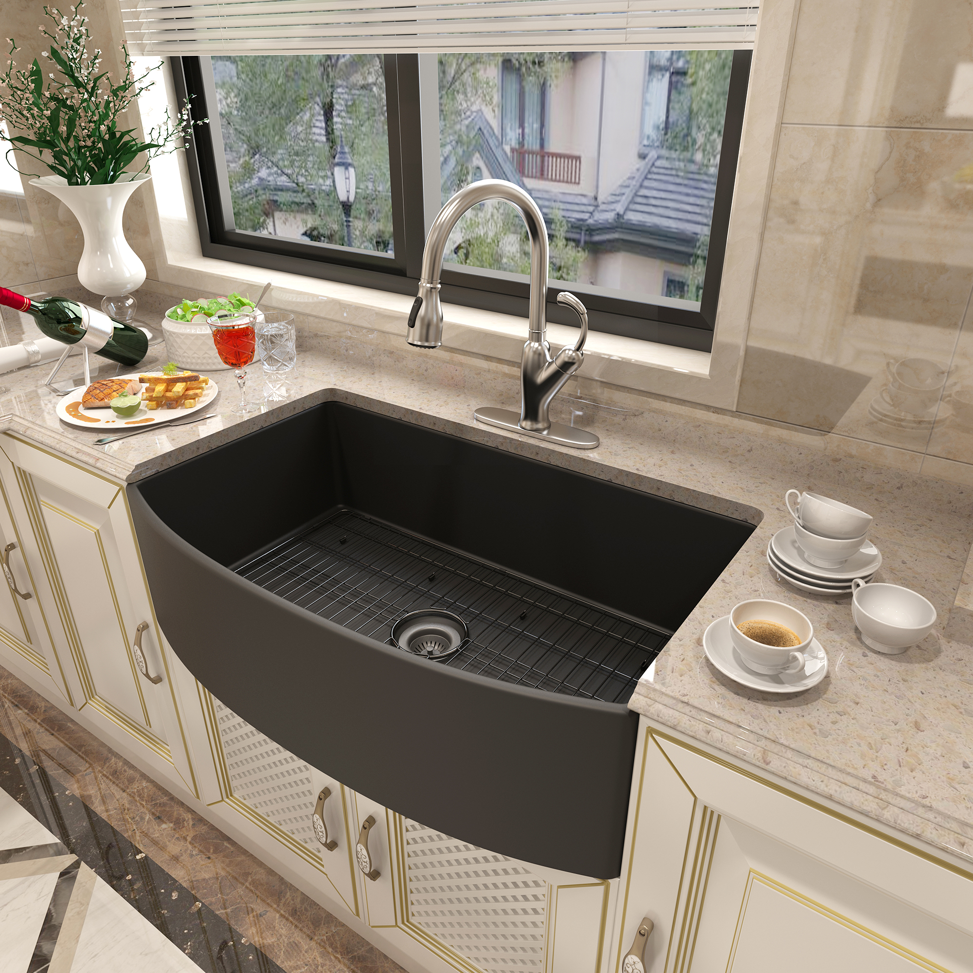 33 in. Fireclay Single Bowl Farmhouse Apron Kitchen Sink with Bottom Grid and Strainer