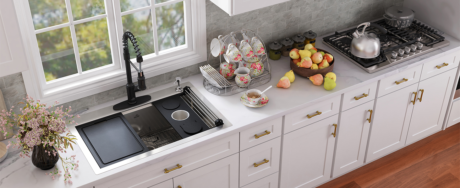 Modern Kitchen Faucet with Pull-Down Sprayer, 360° Swivel, Three Functions