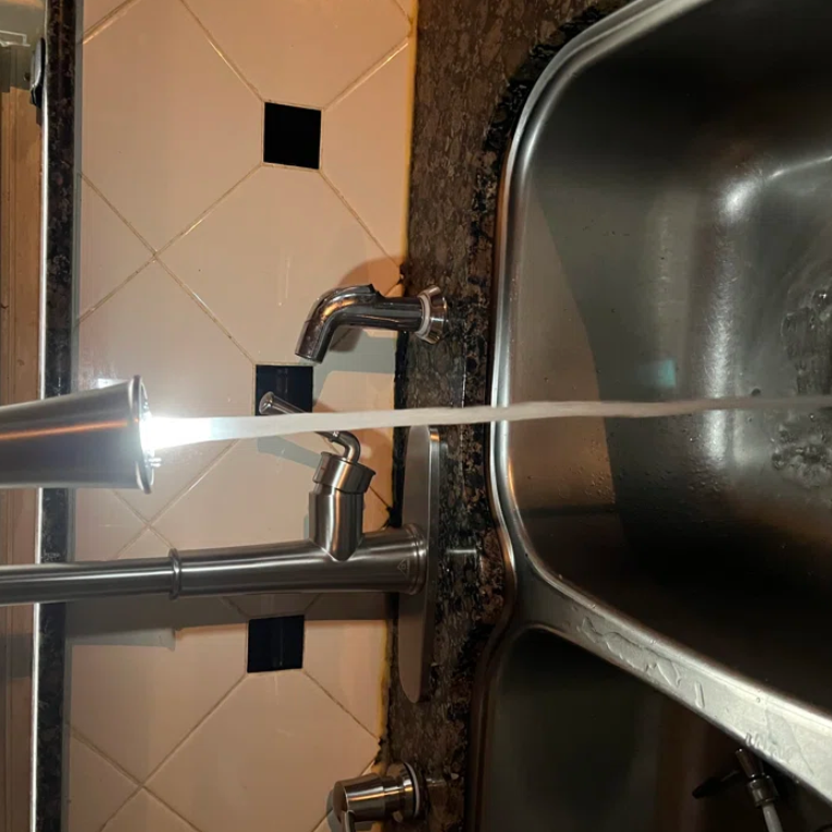 Overall it’s a good kitchen faucet. We like that there’s a light at the end of the spout.