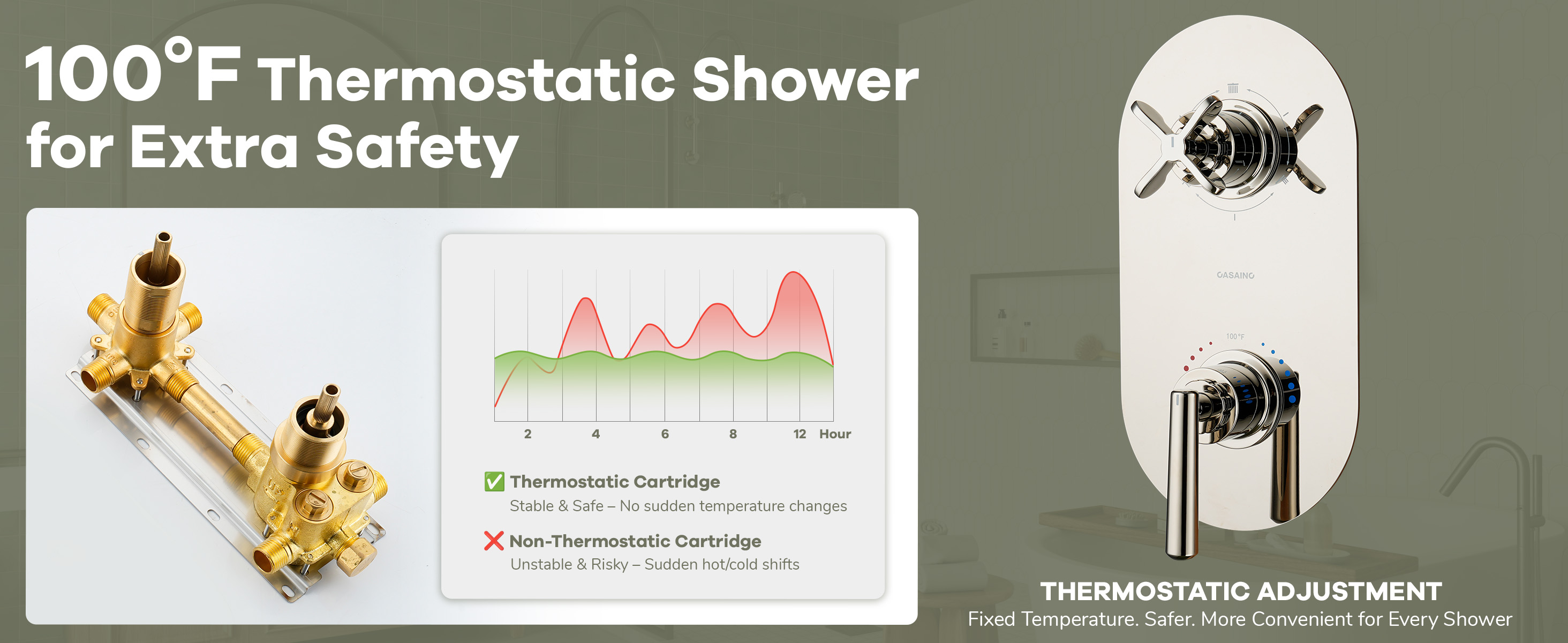 • Classic Design & Craftsmanship: The racetrack-style panel with vintage cross handles embodies timeless European elegance. Stainless steel U-shaped arms and a 9-inch overhead shower with a finely polished surface add to its refined look.