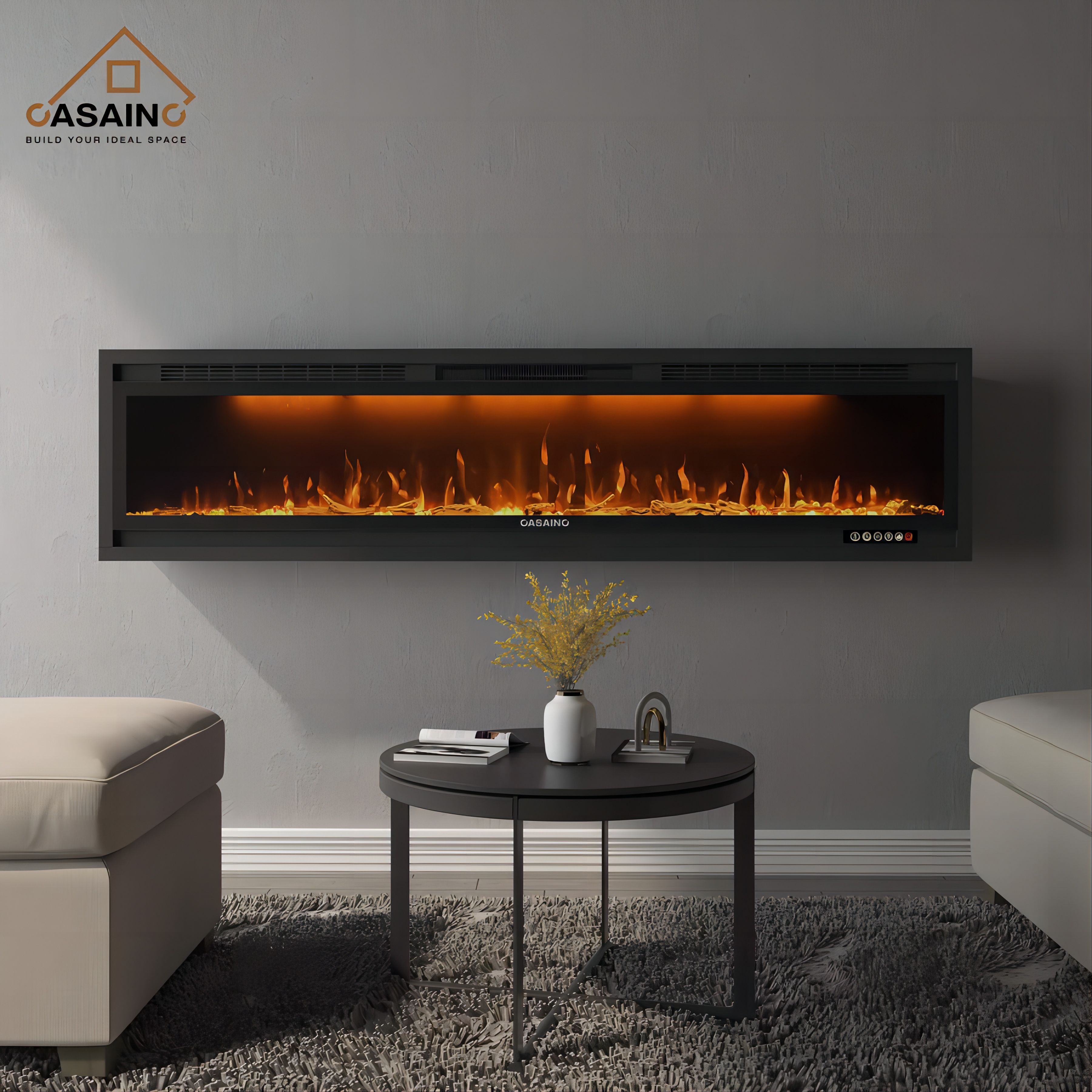 Whether you’re looking to supplement your central unit or seeking to add a heater for one room in your home, our 74-inch electric fireplace for a large room is a great option.