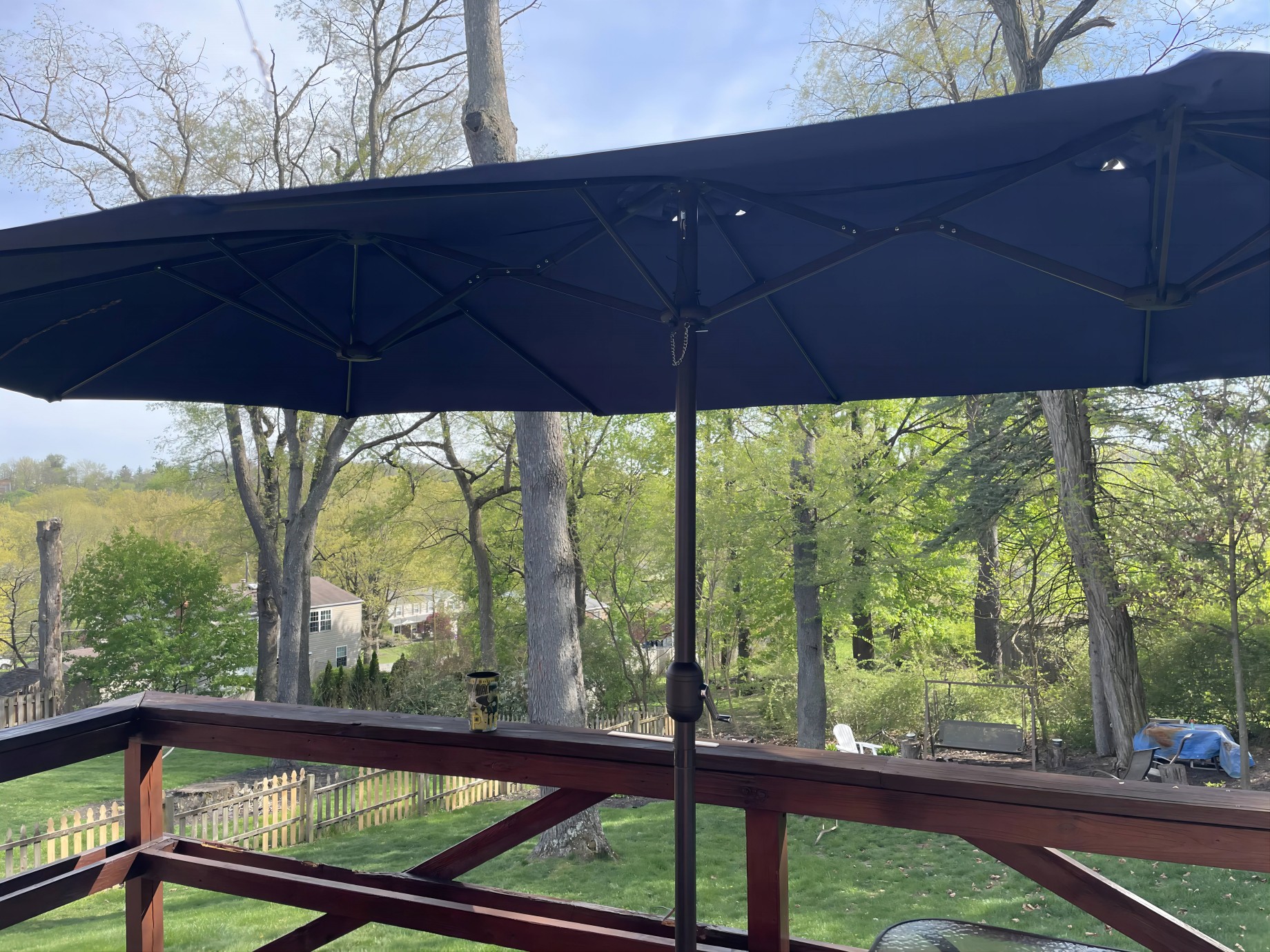 We love our new umbrella. It is perfect for our table and provides great shade. It is built well and the material is strong. I think we will enjoy it for a long time to come!!!