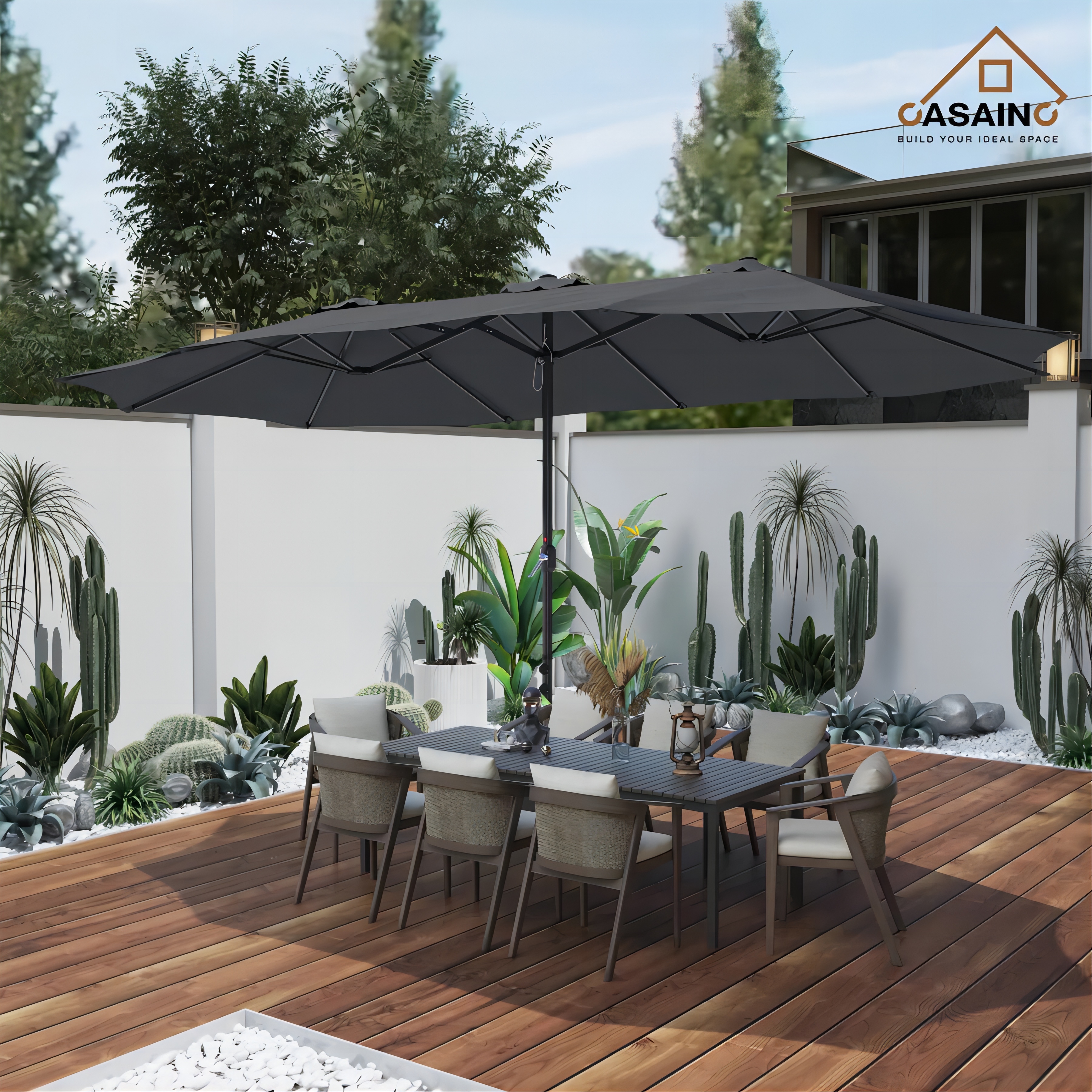 You would think something that big, and so different from the ordinary umbrella would be junk or not stable or not look good. I did but, I don’t anymore. This umbrella rocks. It’s big, it works, the stand was well designed and easy to put together. I’m 100% satisfied for a change.
