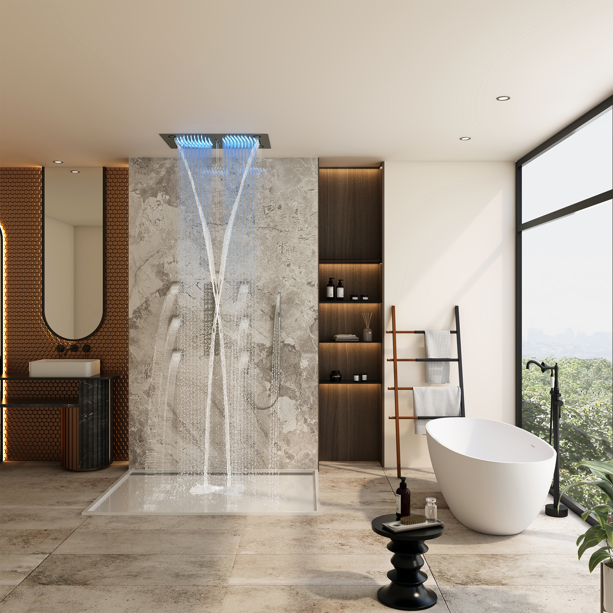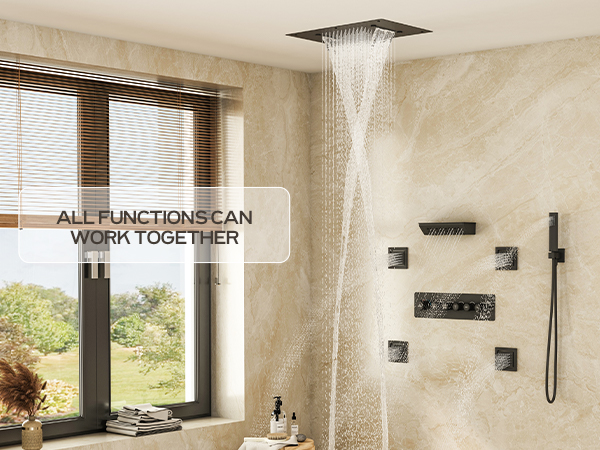 6-Function: Rain, Waterfall, Mist, Rotating Massage, Side Body Spray, Handheld Jet Spray