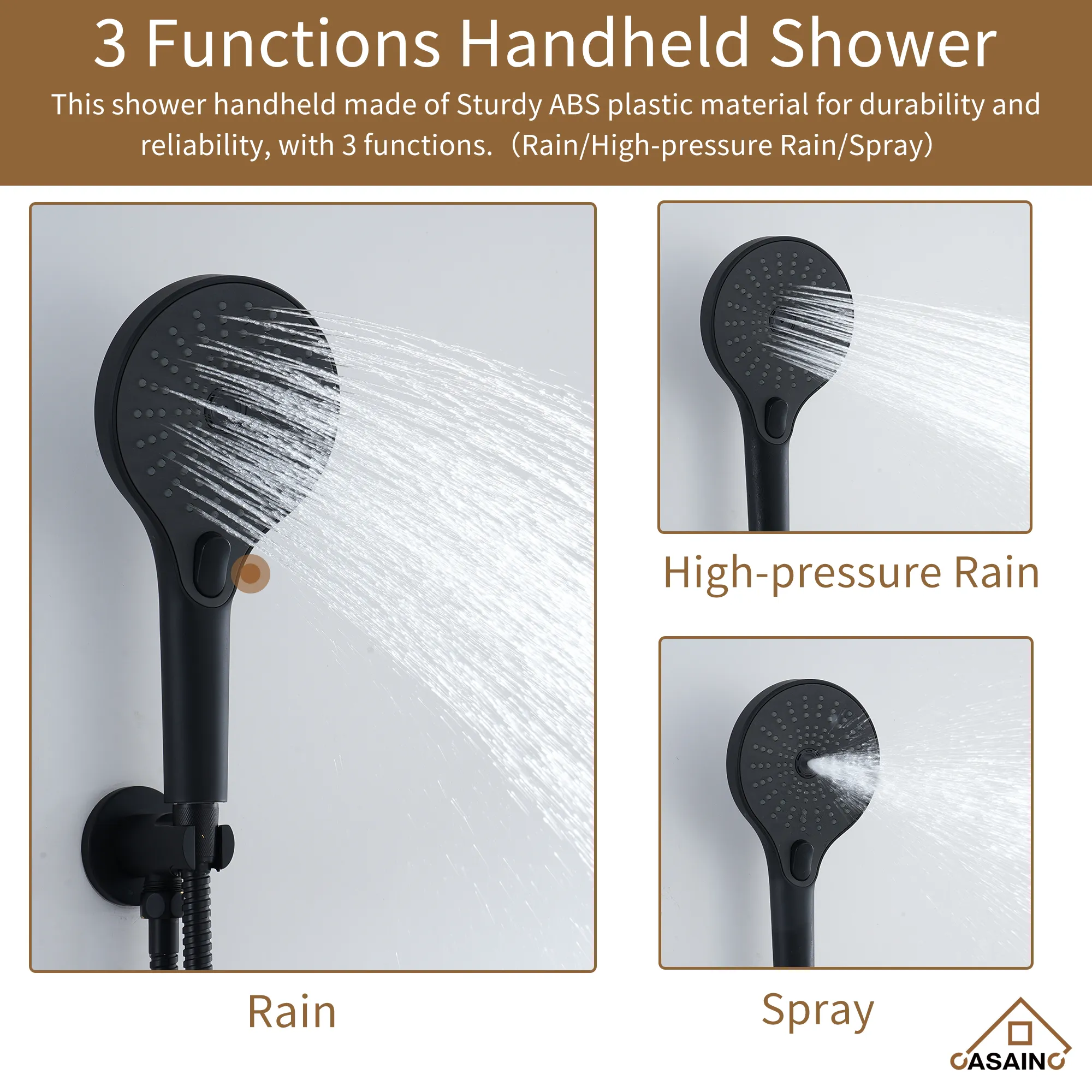 It's time to upgrade your shower system! With a gorgeous oversized shower head, this shower system by CASAINC creates an ideal spot for relaxing. Our luxury top spray has 3 functions spray (Rain / Spray / High-pressure rain), soothes your tiredness and makes you more relaxed when you take a shower. Moreover, Moreover, the French Vernet thermostatic valve can balance constant temperature to avoid scald. Don't hesitate, get yours today and start enjoying CASAINC quality at home!