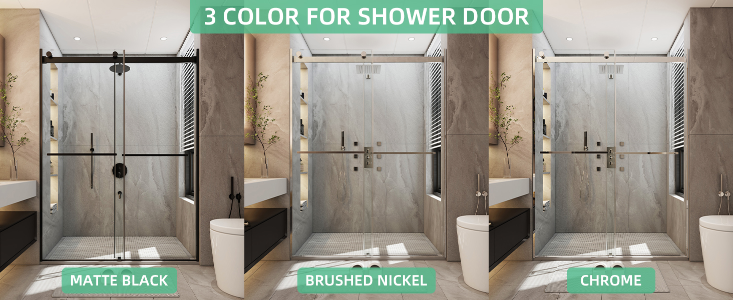 Featuring horizontal handles on both the interior and exterior, this shower door offers practical convenience for hanging towels and easy access. Available in three distinct finishes—Matte Black, Brushed Nickel, and Chrome—each option enhances your bathroom in unique ways.