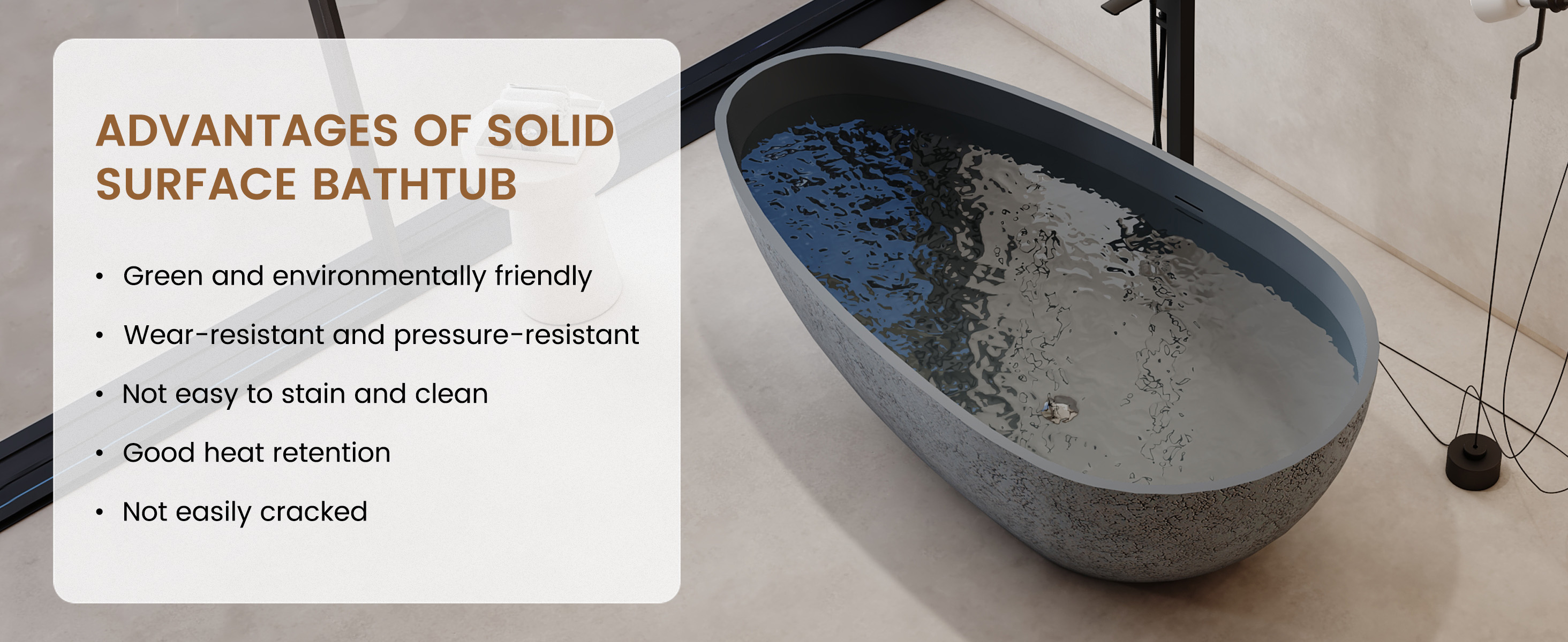 Elevate your bathroom with the Cement Point Treatment Bathtub, where cutting-edge industrial design meets luxurious comfort. Crafted from eco-friendly, 100% handmade resin, this unique bathtub offers exceptional durability and effortless style, while providing optimal lumbar support for a truly relaxing experience. With its superior heat retention and easy-to-maintain surface, this bathtub is the perfect blend of form, function, and sustainability.