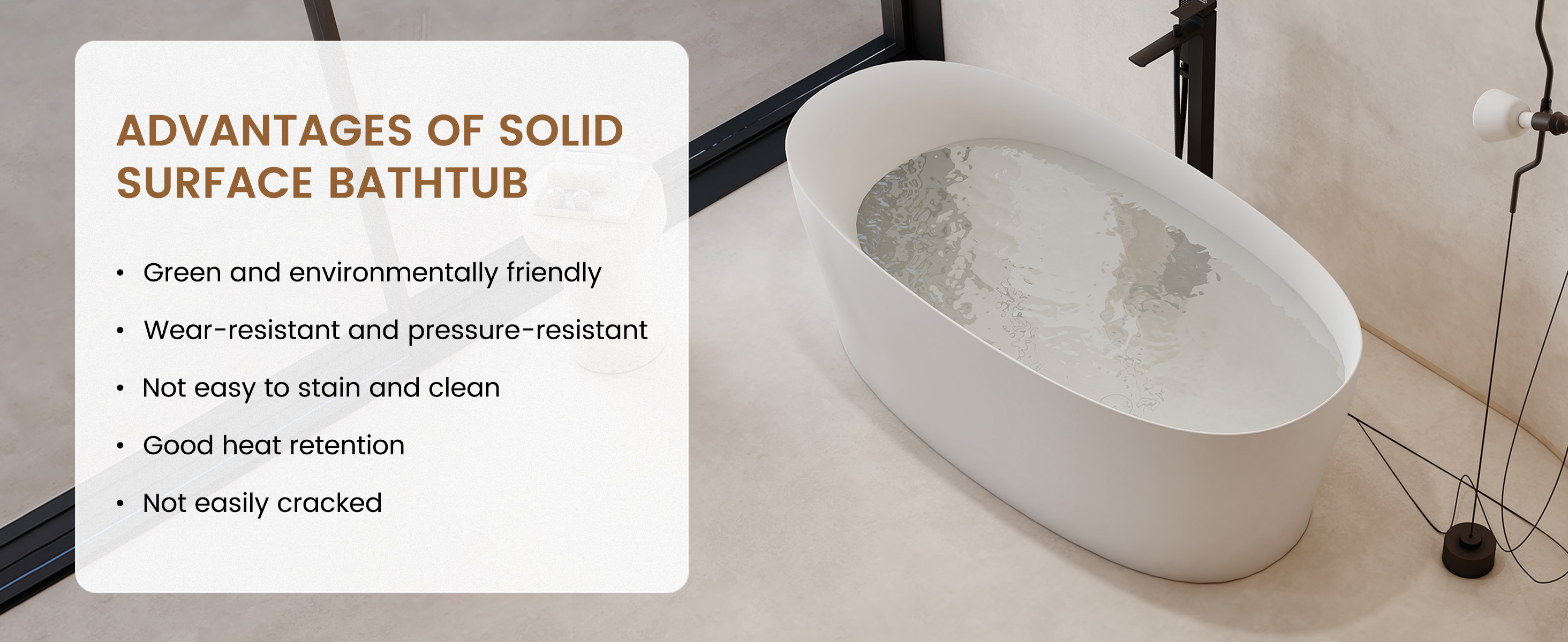 Premium Stone Resin Construction: Made from high-quality, eco-friendly stone resin, offering durability, a luxurious natural stone feel, and easy maintenance.