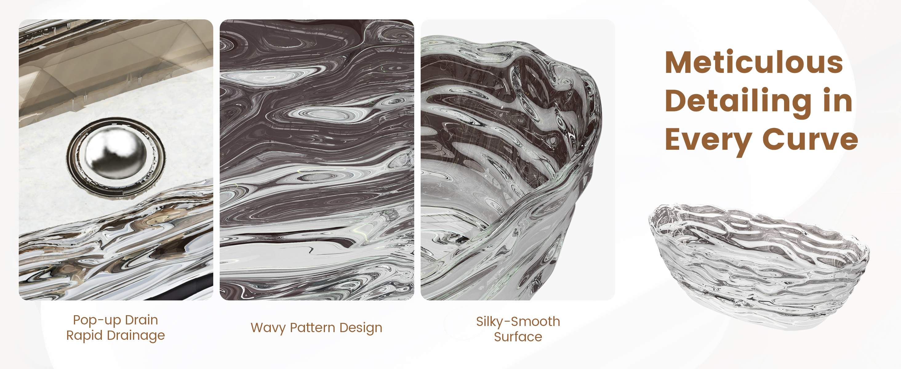 Wavelike Elegance – The rippling wave pattern reflects light and water in motion, transforming your bathroom into a gallery of contemporary design.