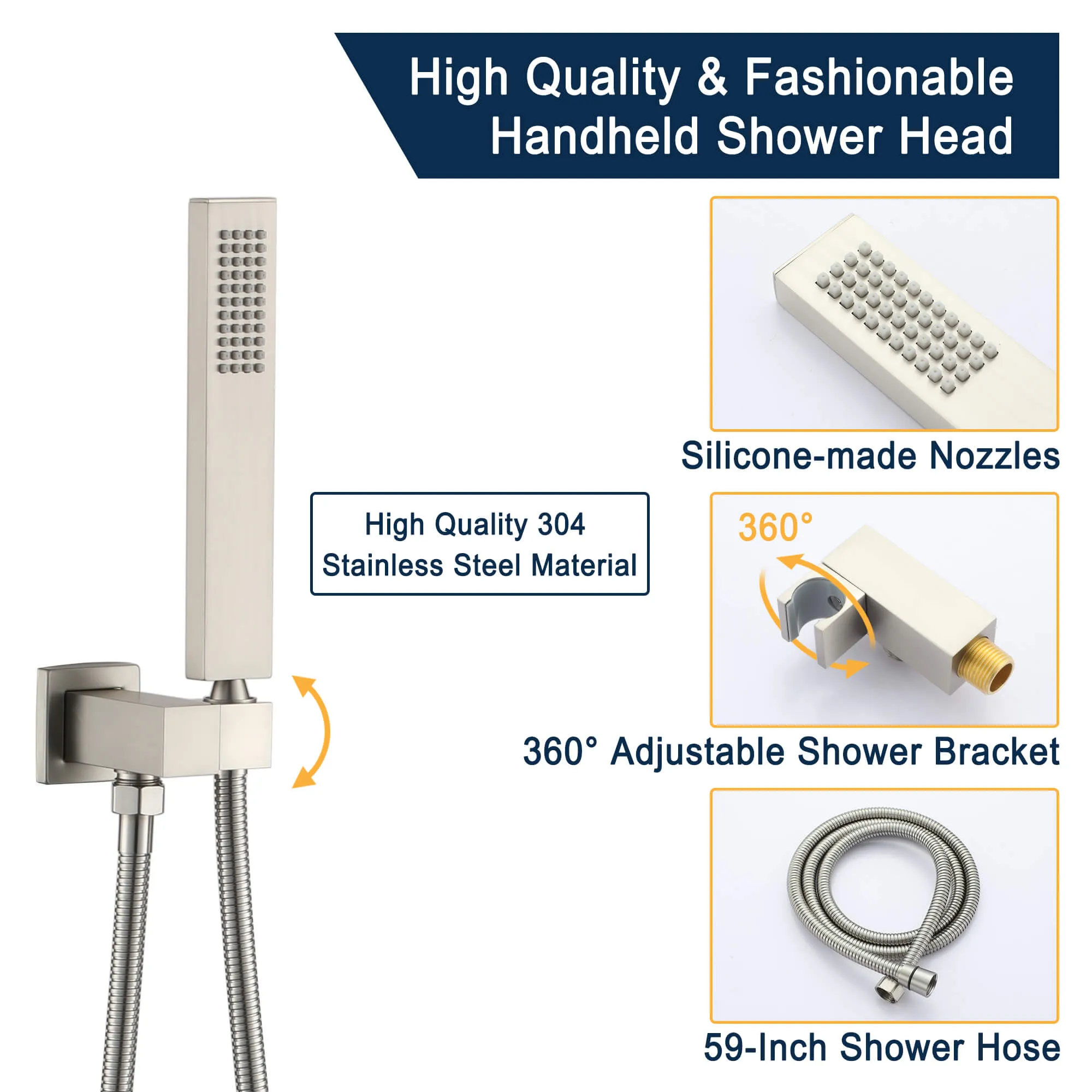 Upgrade your bathroom oasis with CASAINC's Wall-Mounted Rainfall & Waterfall Shower Head System. Immerse yourself in the soothing rainfall and refreshing waterfall shower heads, complemented by the convenience of a handheld shower. Create a spa-like atmosphere at home with this stylish and versatile shower system.