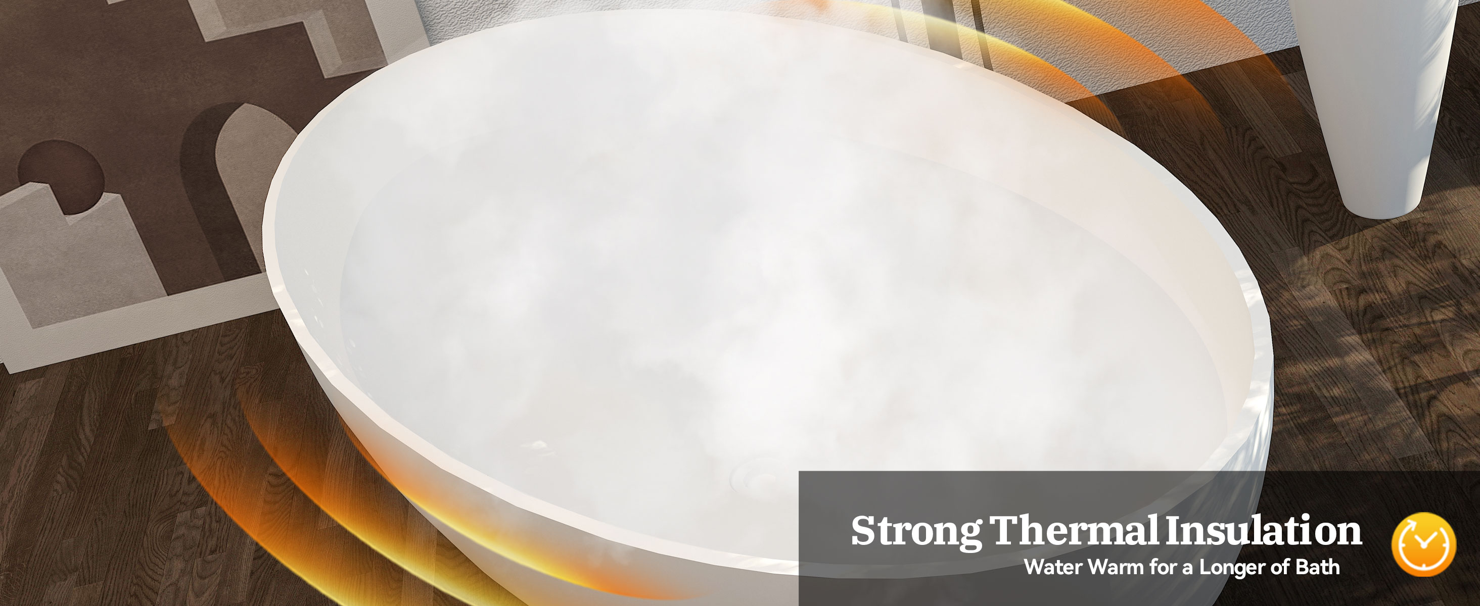 This elegant 67-inch oval bathtub, crafted from eco-friendly and non-toxic materials, boasts a contemporary white finish that enhances any modern bathroom. The smooth contours are designed to provide superior comfort, aligning with the body's natural curves for a luxurious bathing experience.