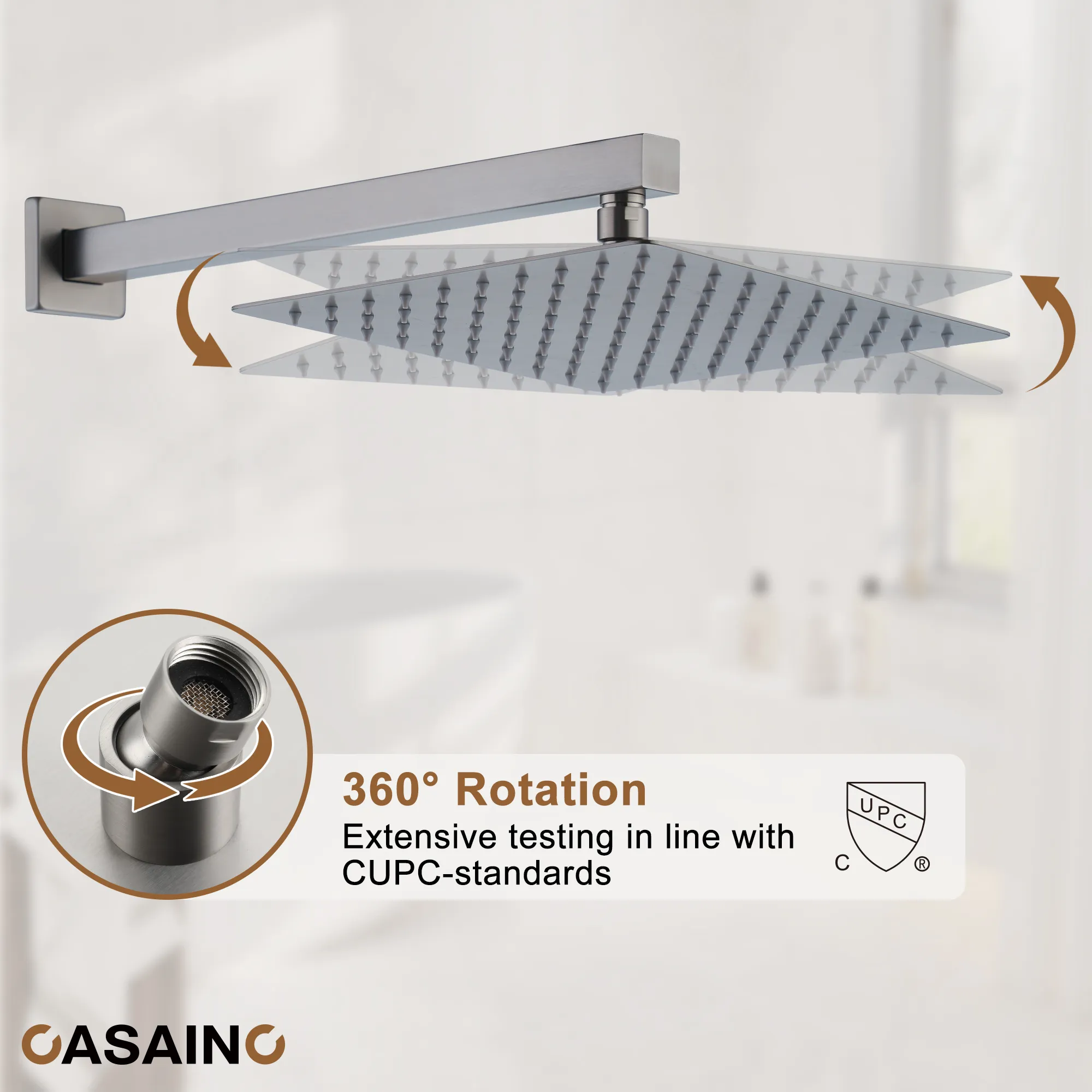 Step into a realm of unparalleled luxury with our elegant shower system, showcasing a 360° rotation shower head for an elevated bathing experience. Delight in the gentle cascade of our wall-mounted rainfall shower head, providing a spa-like atmosphere to your daily routine. Effortlessly rotate the shower head for a complete water coverage, ensuring indulgence from every perspective.