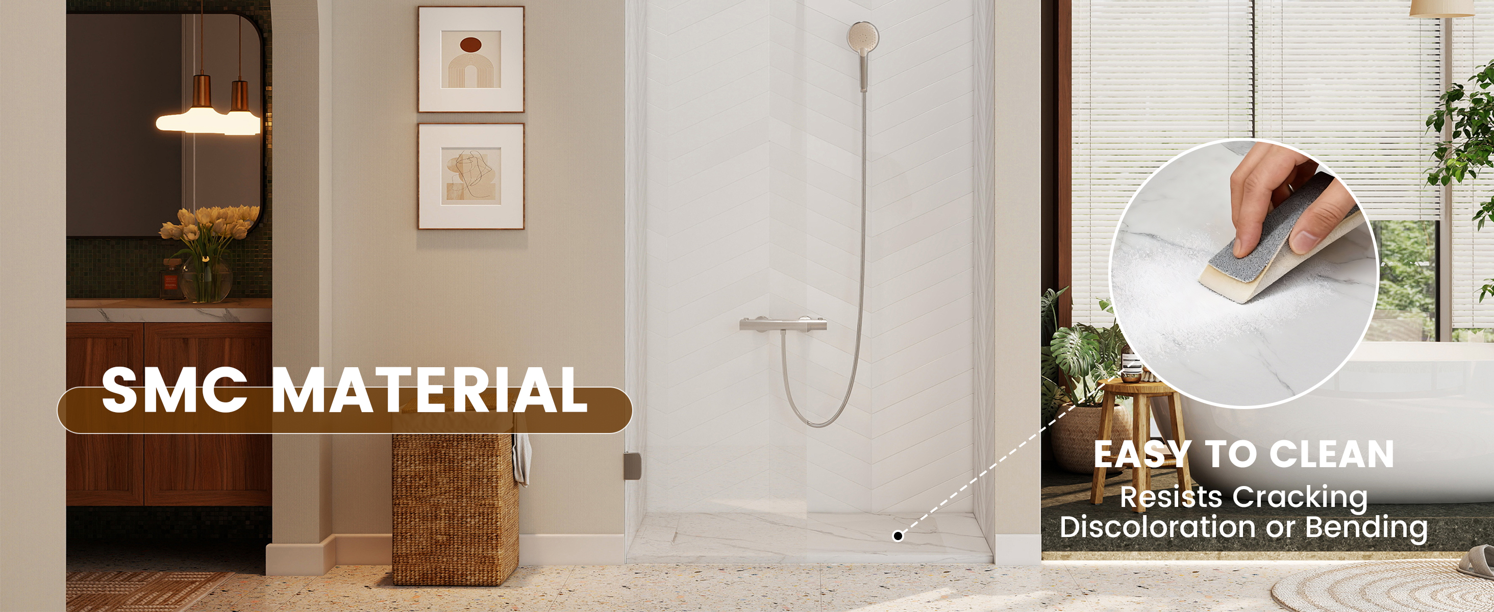 - Premium SMC Construction: Made from reinforced SMC composite, this shower base delivers exceptional structural strength without the brittleness of stone or the flexibility of acrylic. The non-porous material resists mold, moisture, and discoloration for long-term performance.