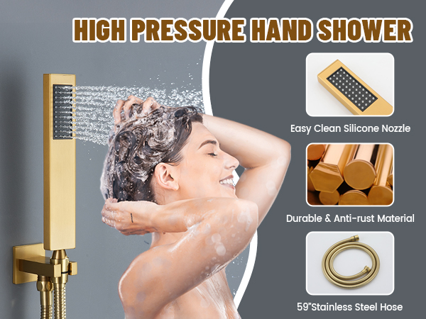 Made of solid brass and high-quality stainless steel, this shower faucet is durable and has 4 functional spouts, including rain, waterfall, indistinct, and handheld to adapt to different needs. The handheld shower gives you the flexibility to clean your target area, the shower head has 64 kinds of lights with adjustable color temperatures to create a different atmosphere and enjoy the changing lights, the comfortable water flow provides you with a pleasant massage treatment, and stand under the rain shower head to release stress at the end of the day's activities. Stand under the rain shower head to release stress at the end of the day's activities.