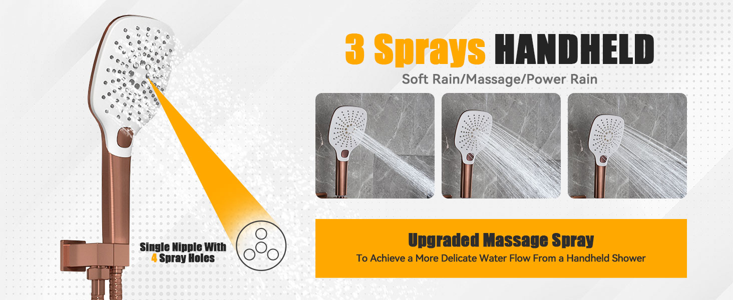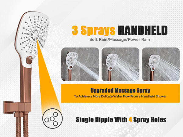 - COMPLETE KIT: Including 16-inch Square rain shower head, 3-Spary Modes handheld shower head, 59-inch shower hose, shower holder, shower mixer control valve