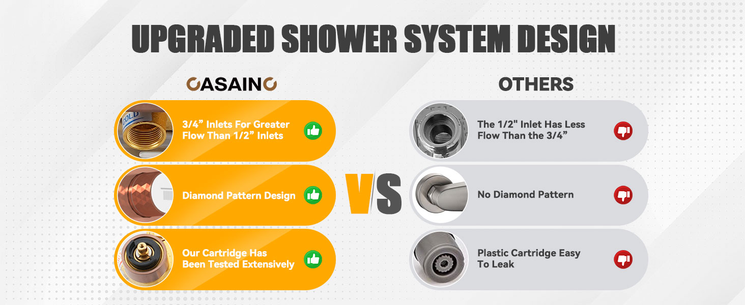 - STANDARD THREADS: The shower bracket holder, shower arm, and Shower Mixer Valve are 1/2" NPT threaded. Standard U.S. connection size, ensuring easy and fast installation