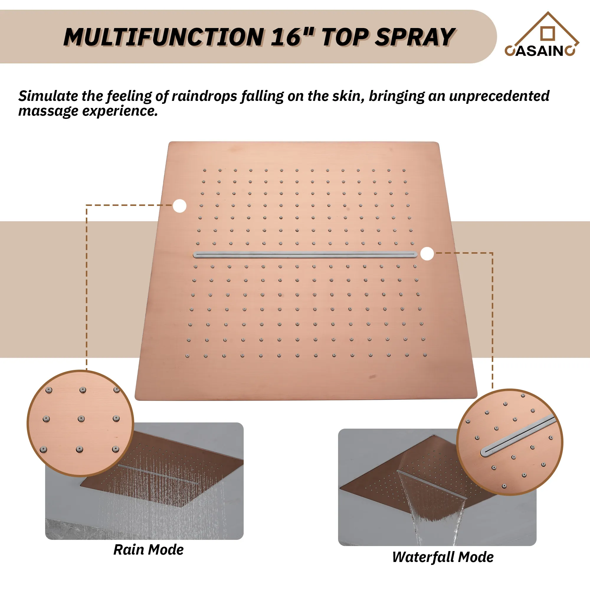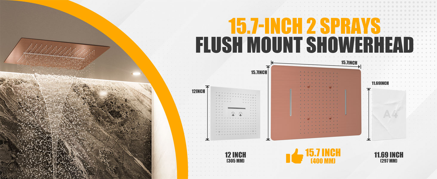 - Multifunctional rain shower head: waterfall discharge mode and rain shower mode