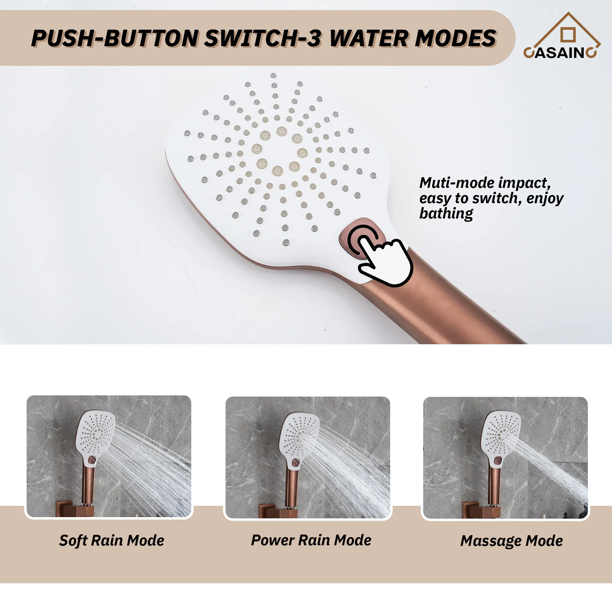 - EASY OPERATION: Button design for effortless flow and temperature control. You can switch the button to open the rain shower head and handheld shower head as you like ( can use them together at the same time ).