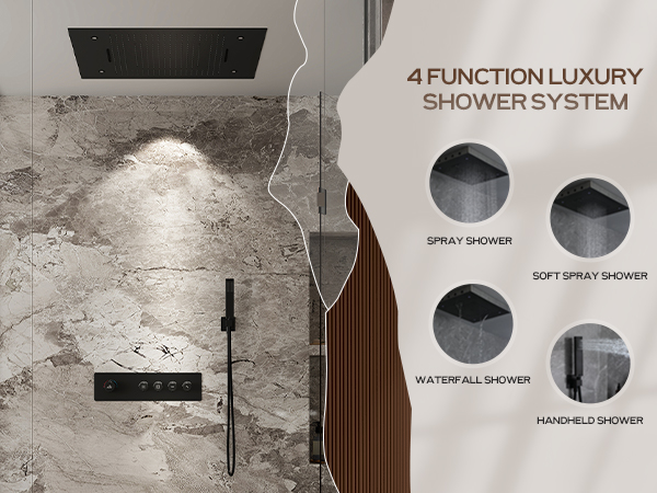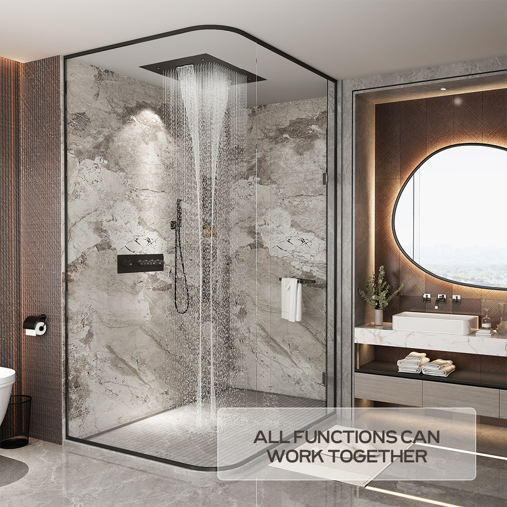 - Luxurious Multi-Function Shower: Fulfilling the demands of a luxurious bathroom, this system offers mist, rain, and waterfall functions for a variety of invigorating water massages, complemented by a large 23.62"*31.49" overhead shower for indulgent bathing experiences.