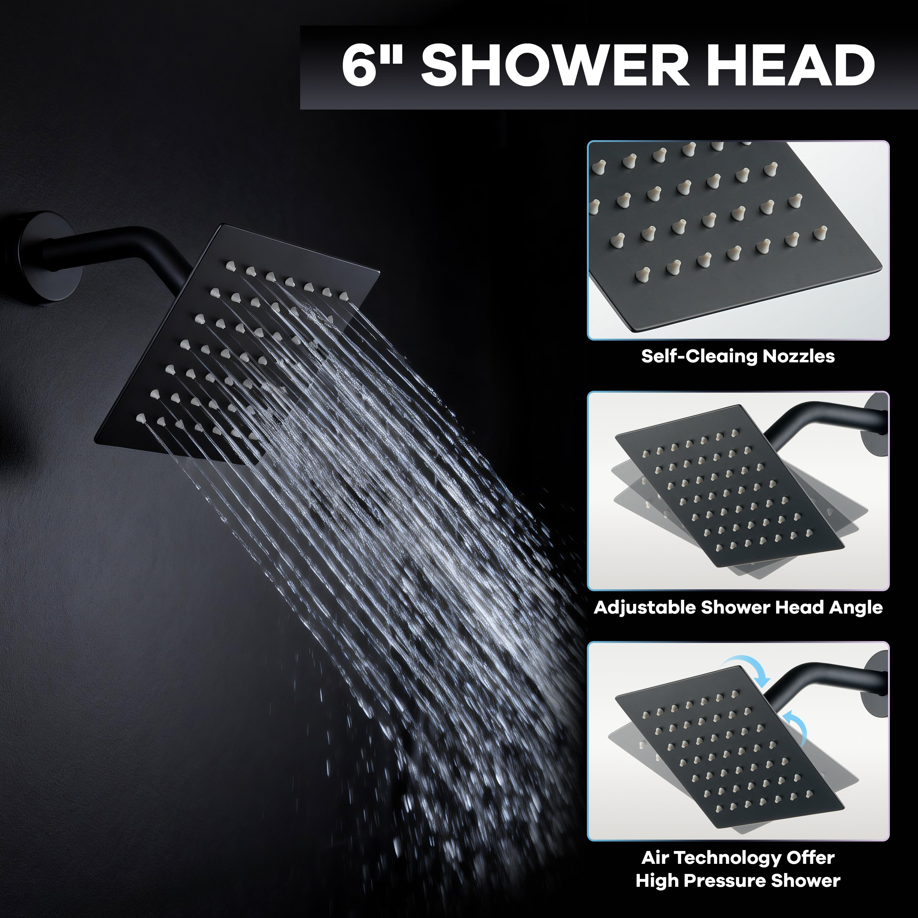 - Dual Ultra-Slim Overhead Showerheads: Includes a 12" slim rainfall showerhead and a 150×150mm (6") slim overhead showerhead, providing even, immersive rainfall from two directions.