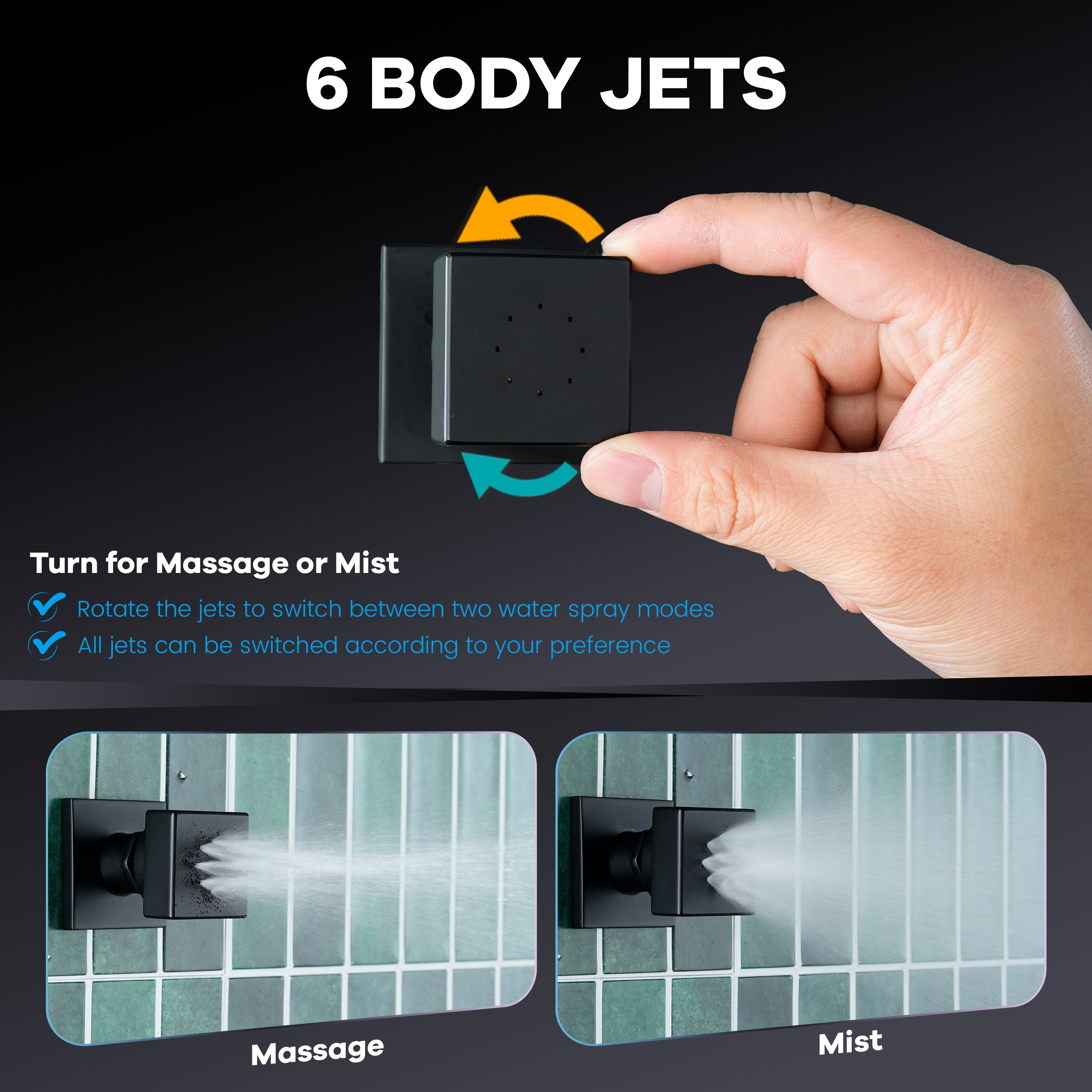 - Full-Body Hydrotherapy with Six Body Jets: Six 2" dual-function body sprays offer rain and mist modes, delivering relaxing, wide-coverage hydrotherapy to enhance overall shower comfort.