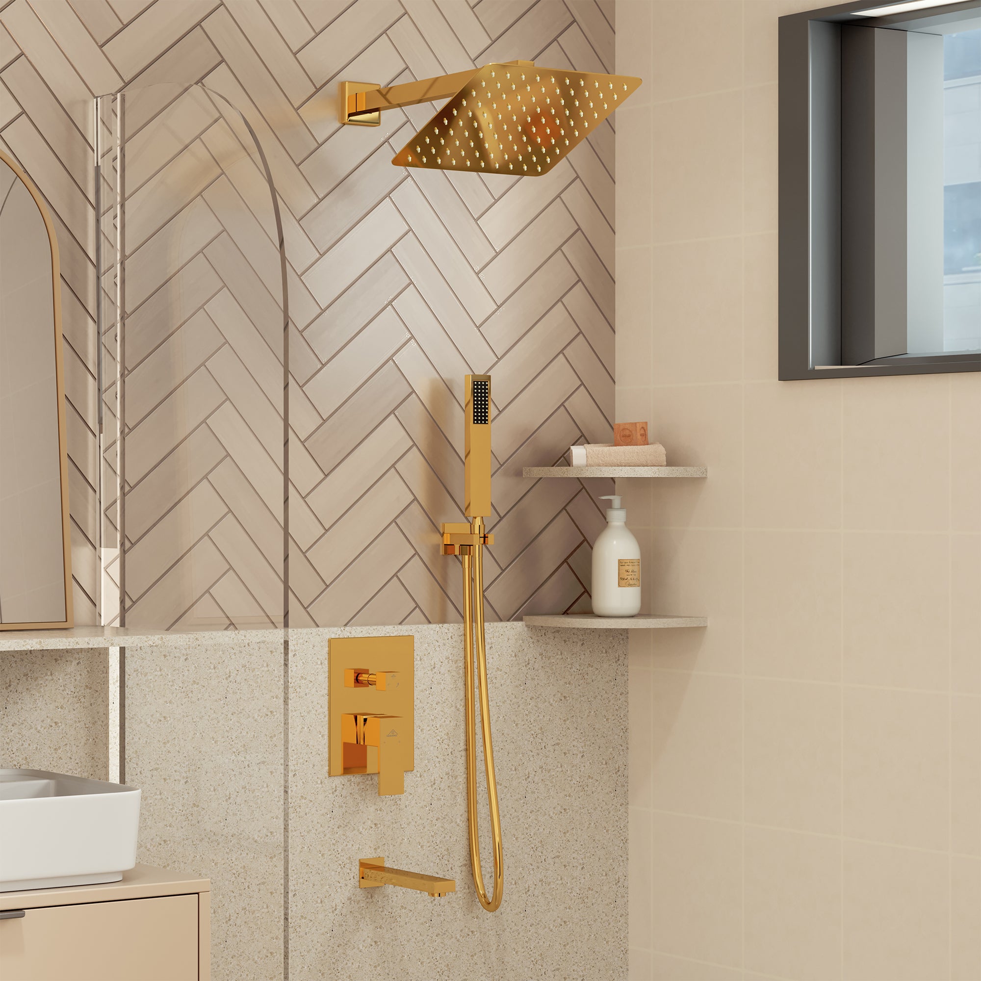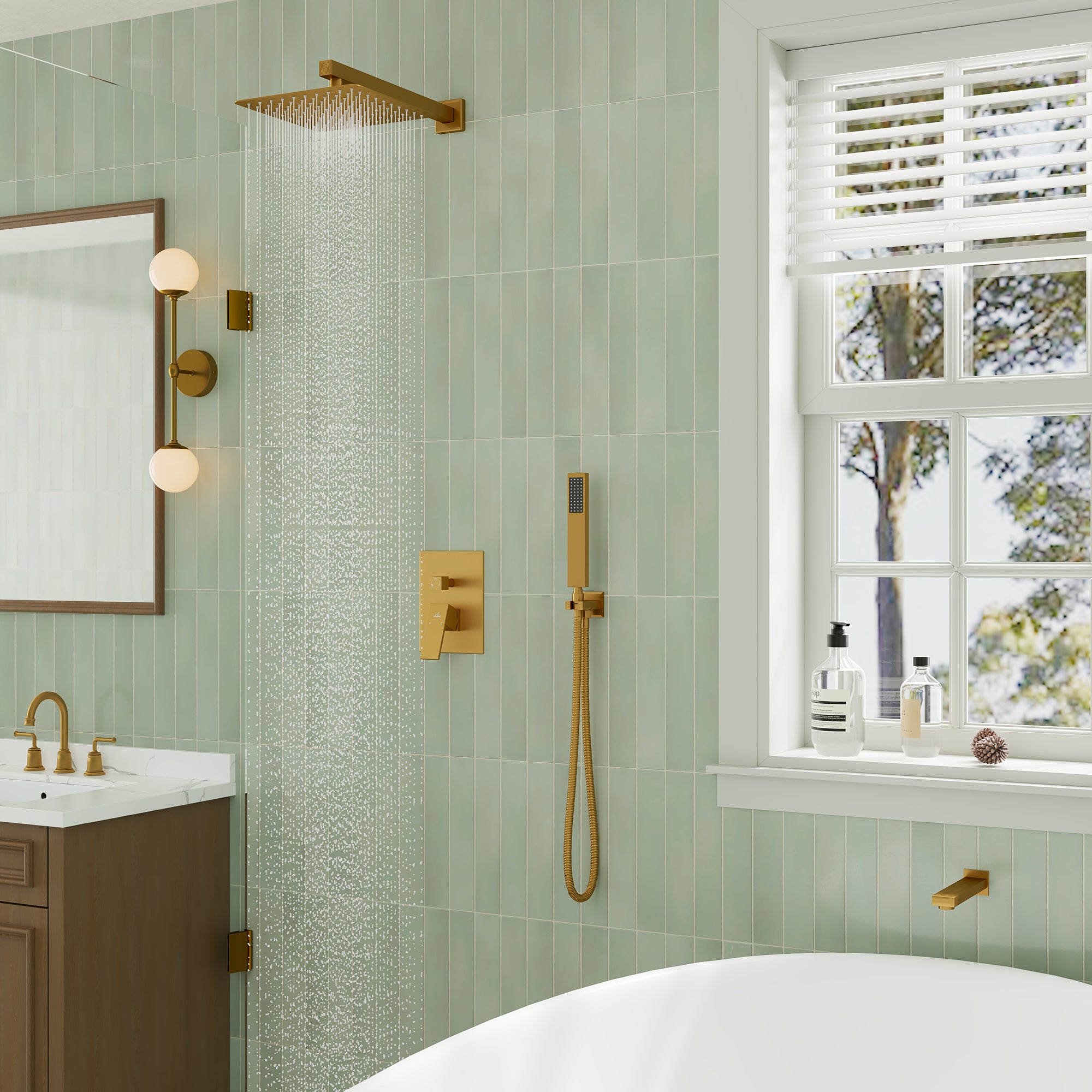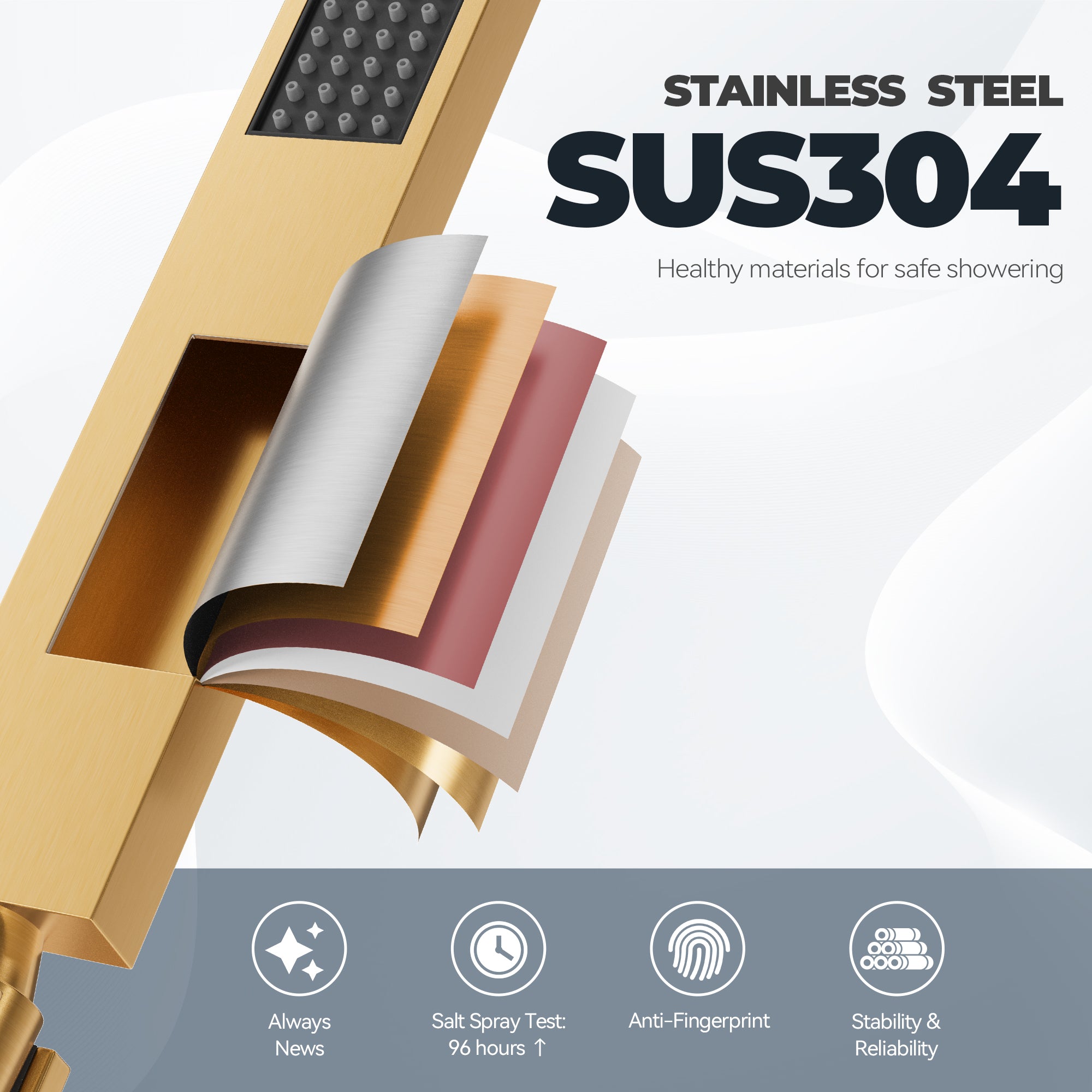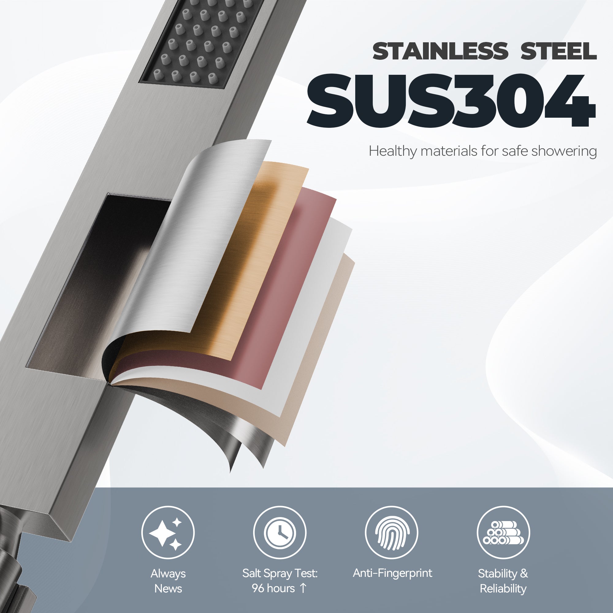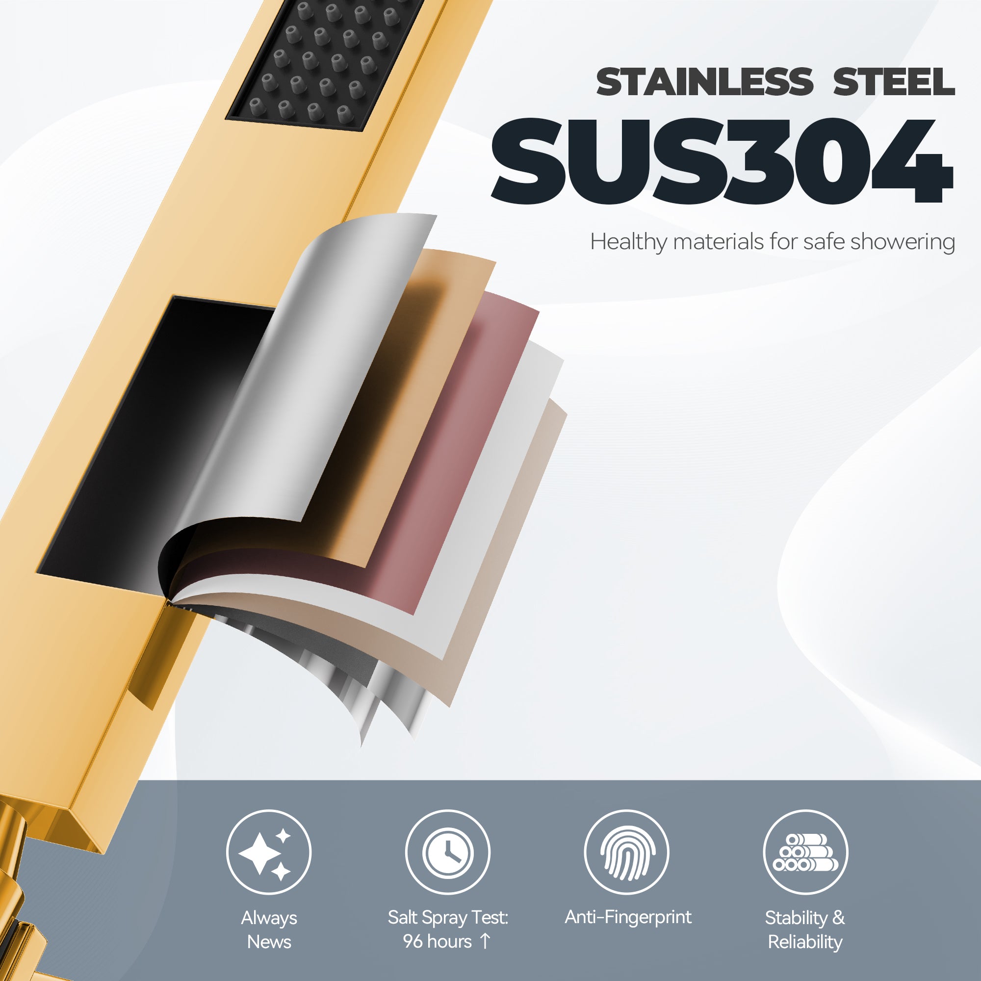 This wall-mounted 3-function single shower rain system is made of brass, and the square stainless steel shower has a high-level appearance and long-lasting durability. CUPC-certified valve included, a Stainless steel hand shower with a 59-inch hose, 15-inch shower arm, and tub spout. The whole set of shower systems will bring you an advanced shower experience and wash away all-day fatigue.