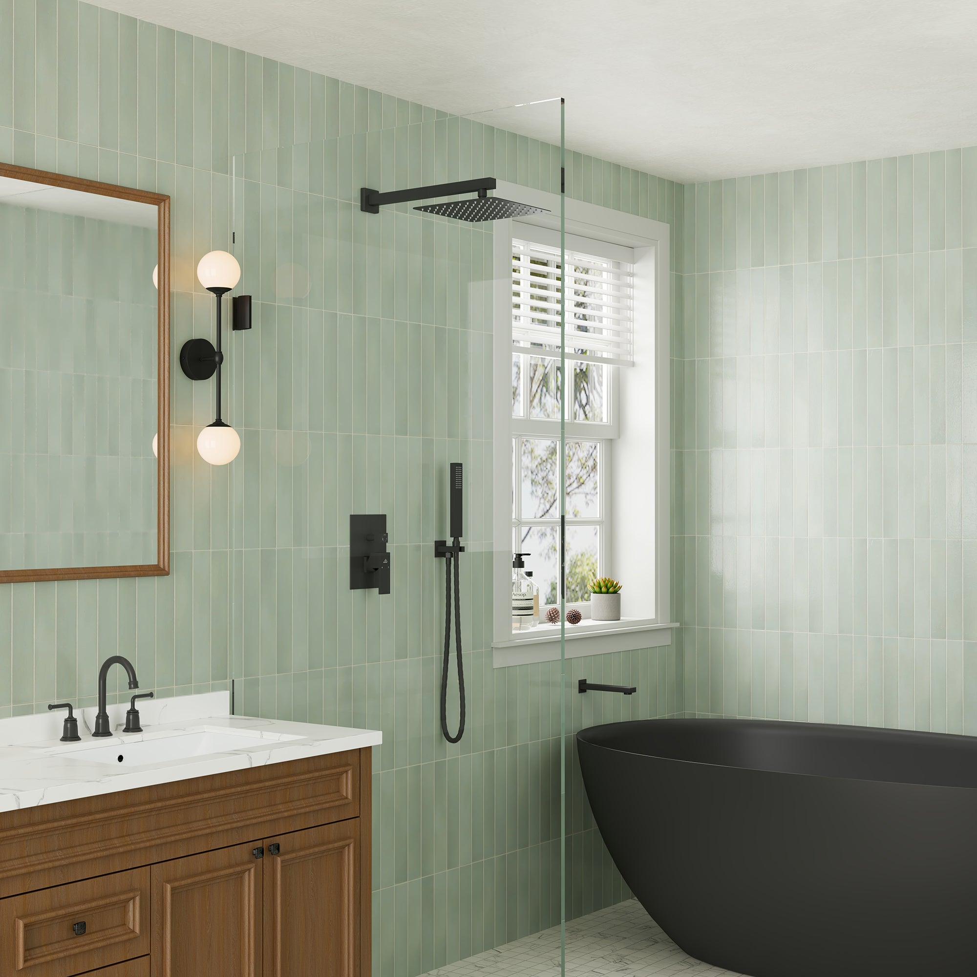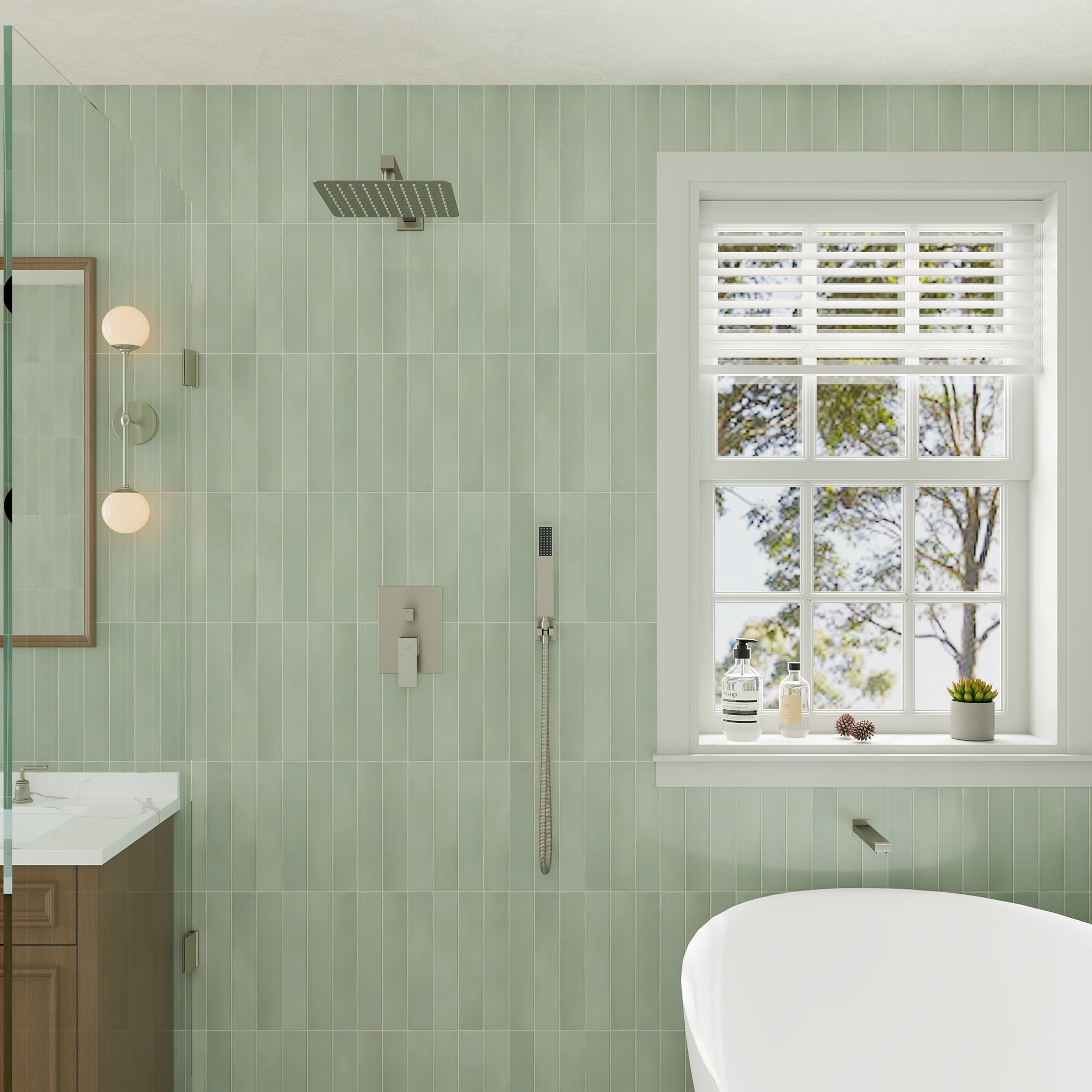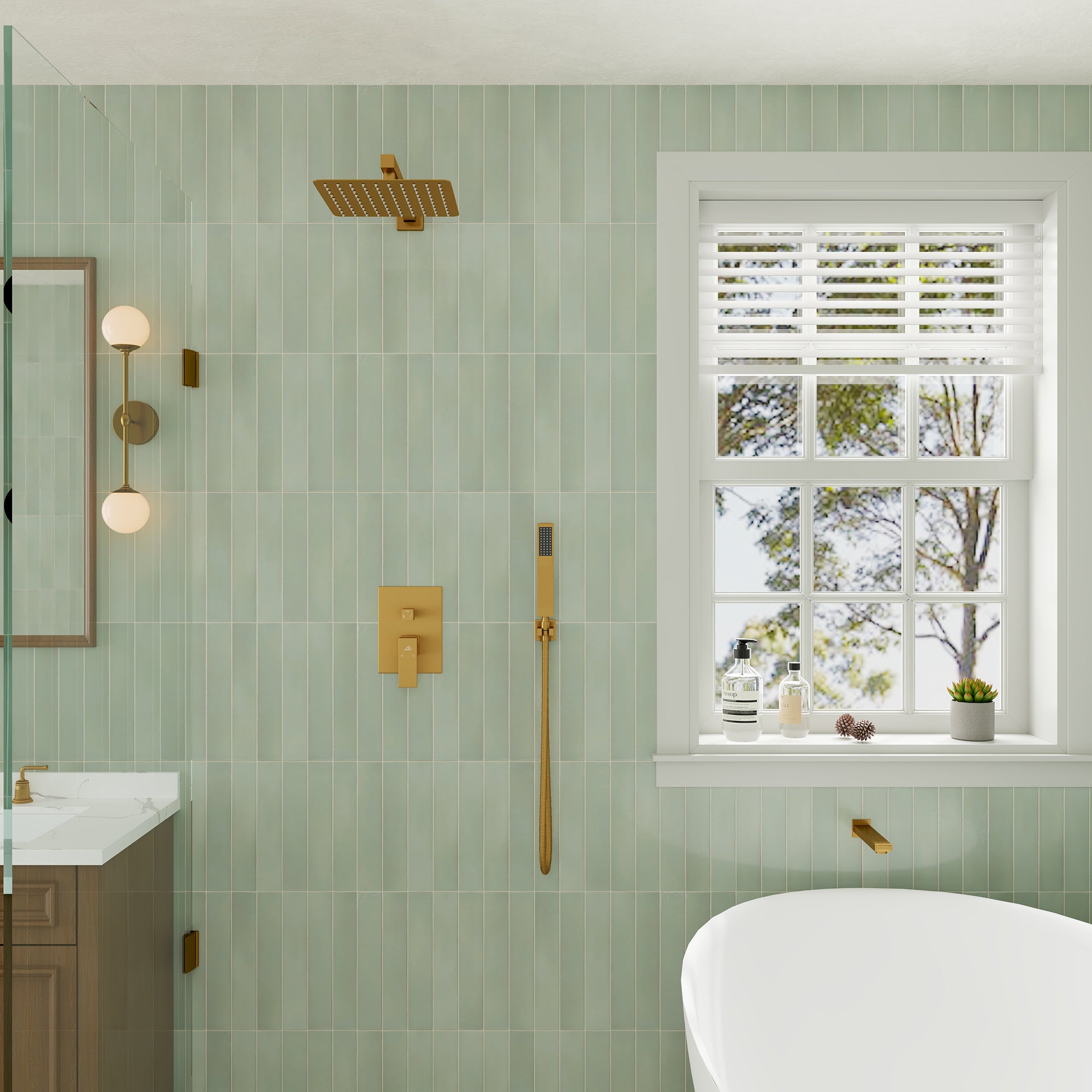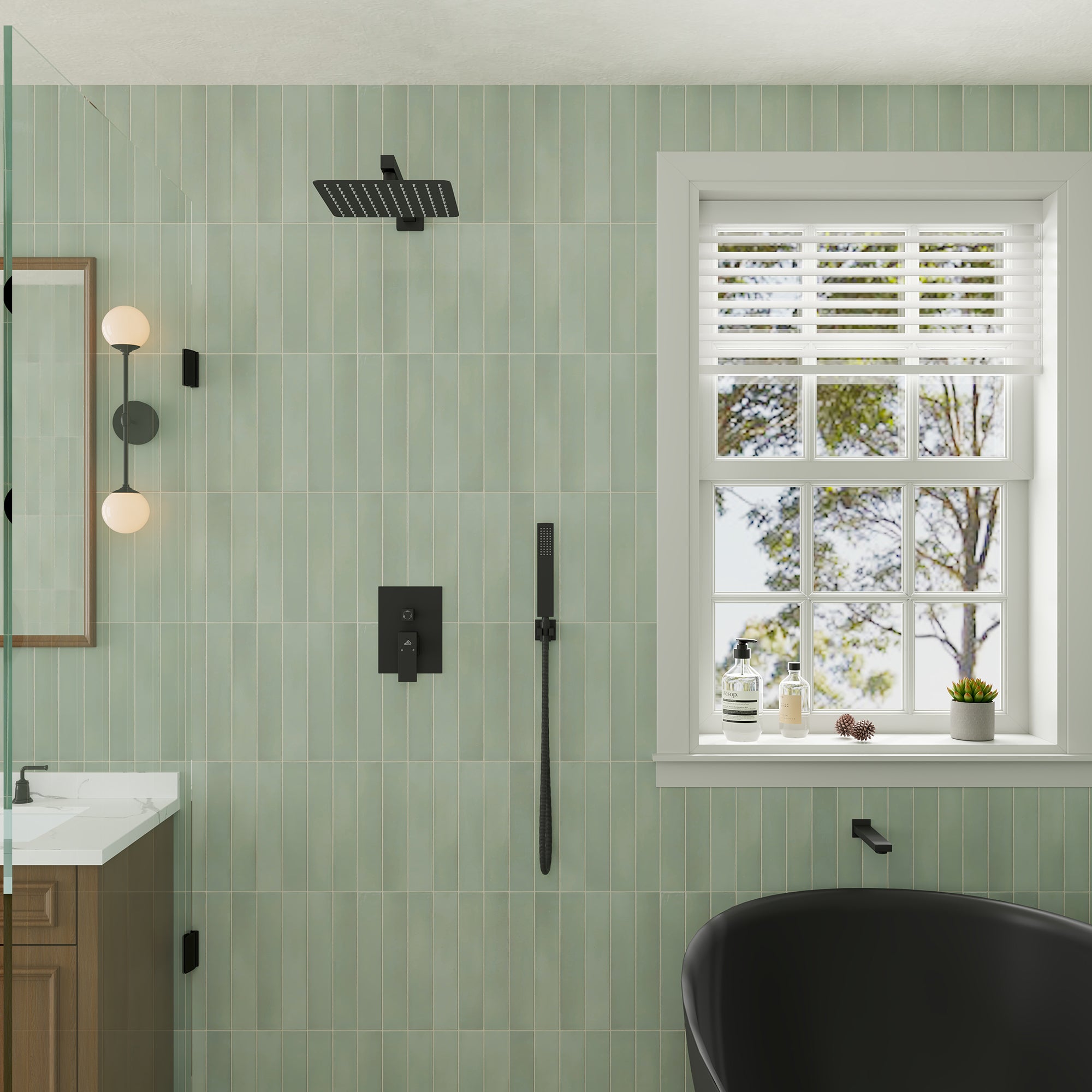 This wall-mounted 3-function single shower rain system is made of brass, and the square stainless steel shower has a high-level appearance and long-lasting durability. CUPC-certified valve included, a Stainless steel hand shower with a 59-inch hose, 15-inch shower arm, and tub spout. The whole set of shower systems will bring you an advanced shower experience and wash away all-day fatigue.