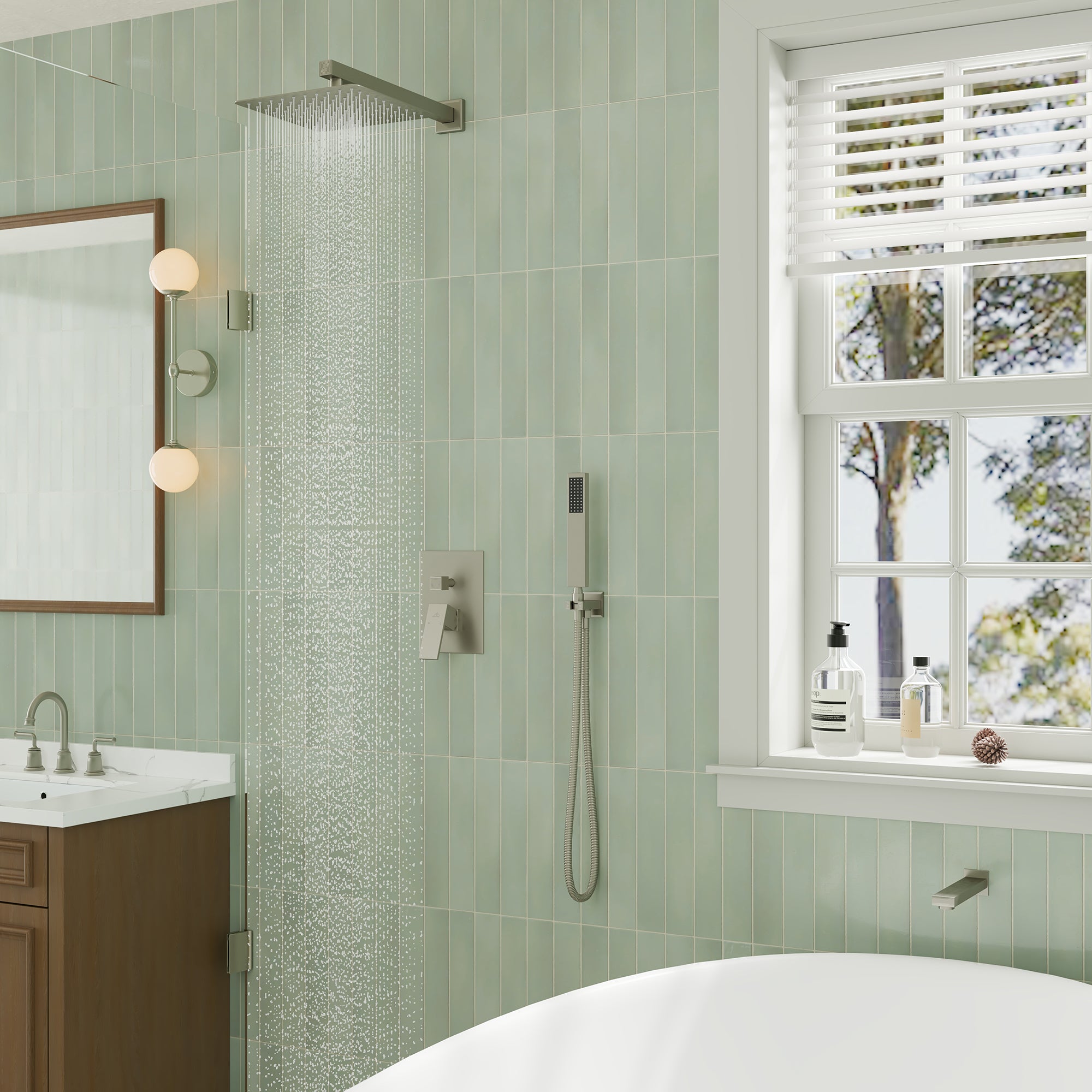 Rain Shower System with Tub Spout Description:
