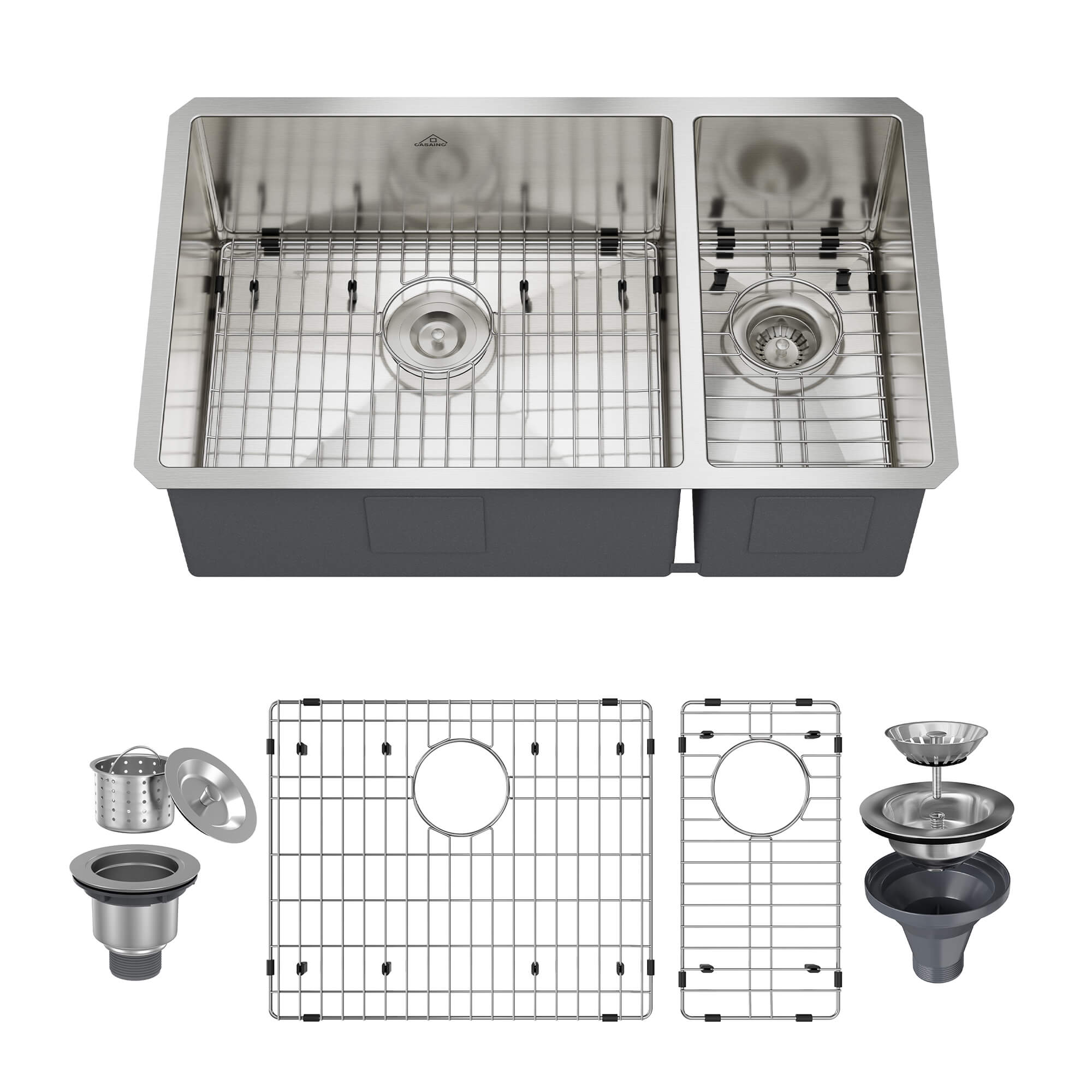 Introducing our All-in-One Stainless Steel Kitchen Sink, expertly forged from premium-grade 304 stainless steel. Revel in the precision of its tight 10mm radius, creating elegantly smooth and seamless corners. The meticulously designed X-shaped drainage lines, complemented by a rear drainage hole, not only simplify cleaning but also adeptly channel water flow, averting the buildup of kitchen waste and residual water in corners. Bid farewell to the breeding ground for bacteria and the corrosion of your sink. Elevate your kitchen with the epitome of functionality and hygiene – our Stainless Steel Sink.