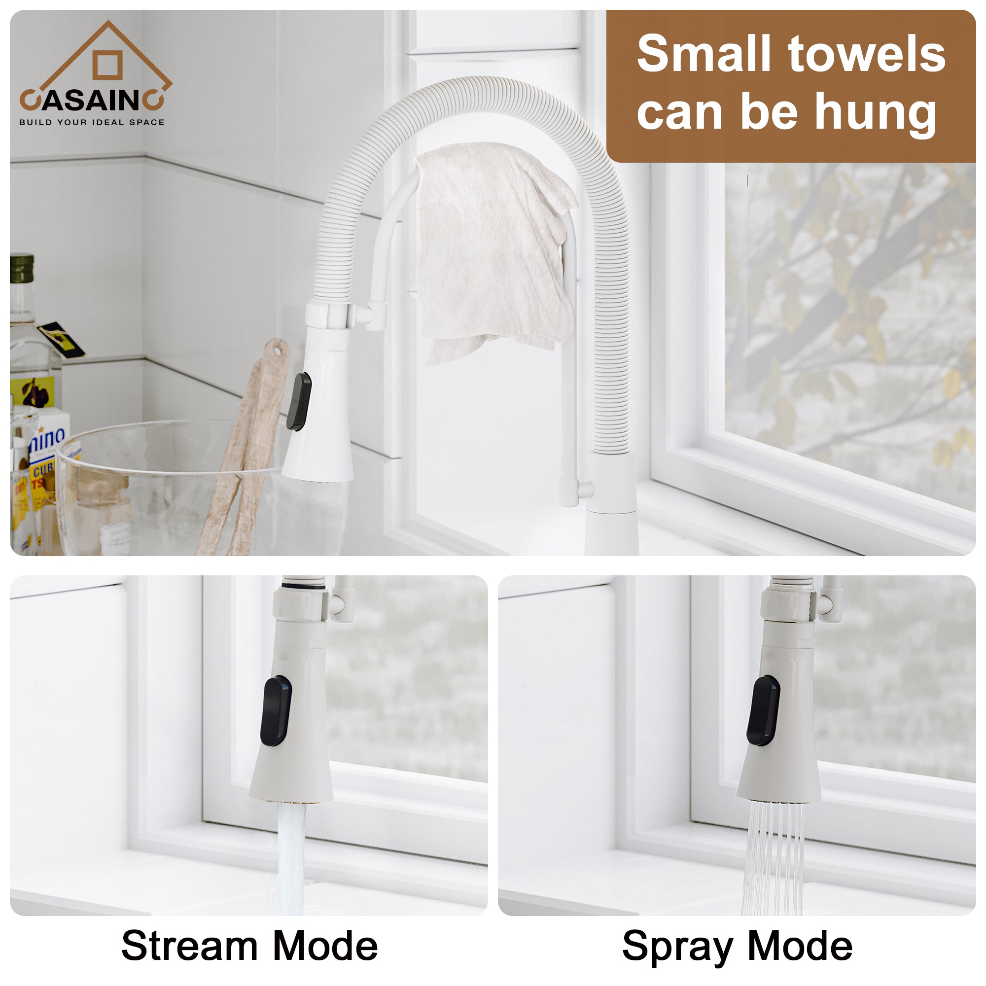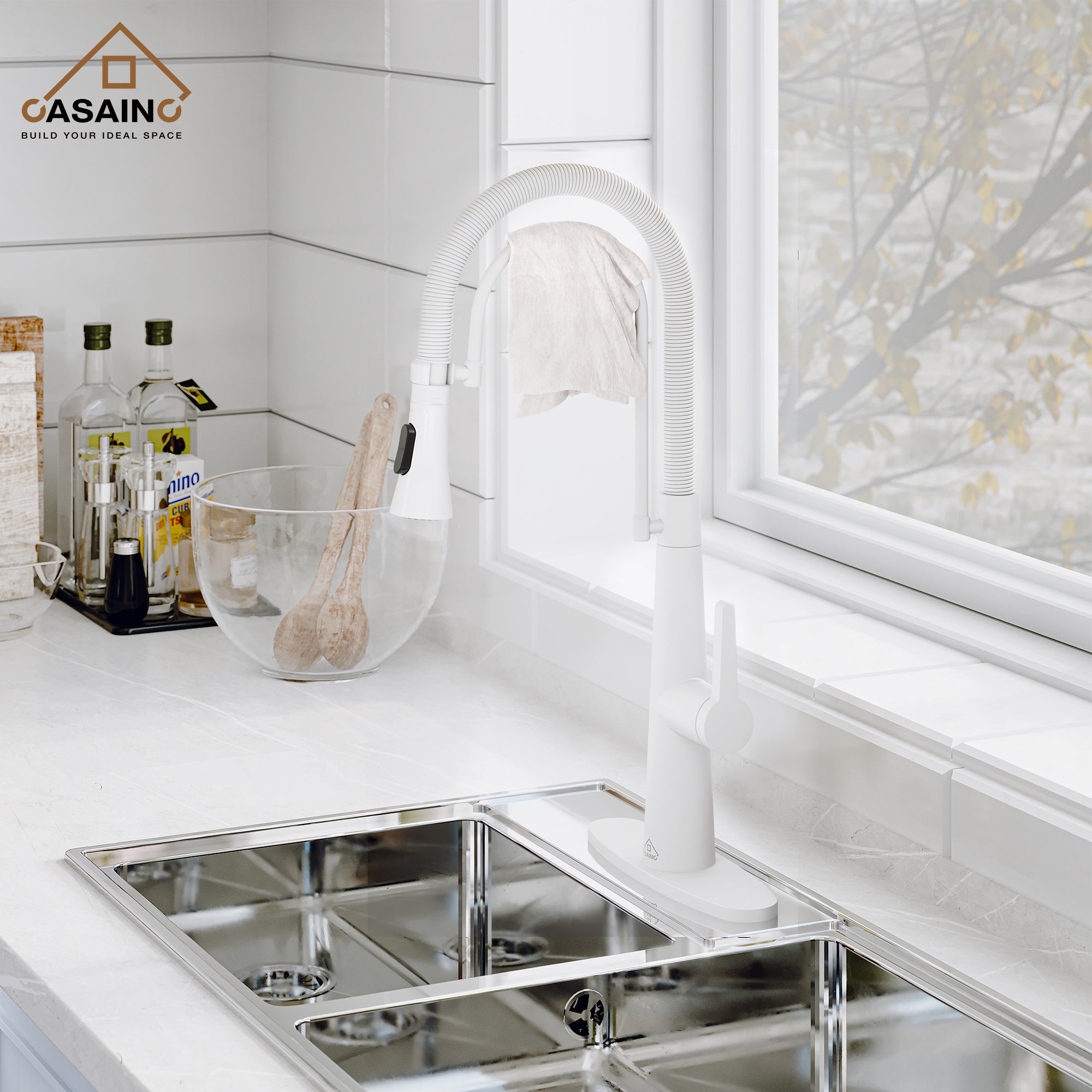 The kitchen faucet from CASAINC updates your kitchen with its sleek style and superior functionality that is essential in every kitchen. Easy to use with a single-handle design, this faucet with 2-spray modes that makes easy work of kitchen tasks. Featuring a ceramic disc cartridge for drip free performance, the 1.8 GPM flow rate also provides excellent water pressure for your cleaning needs.