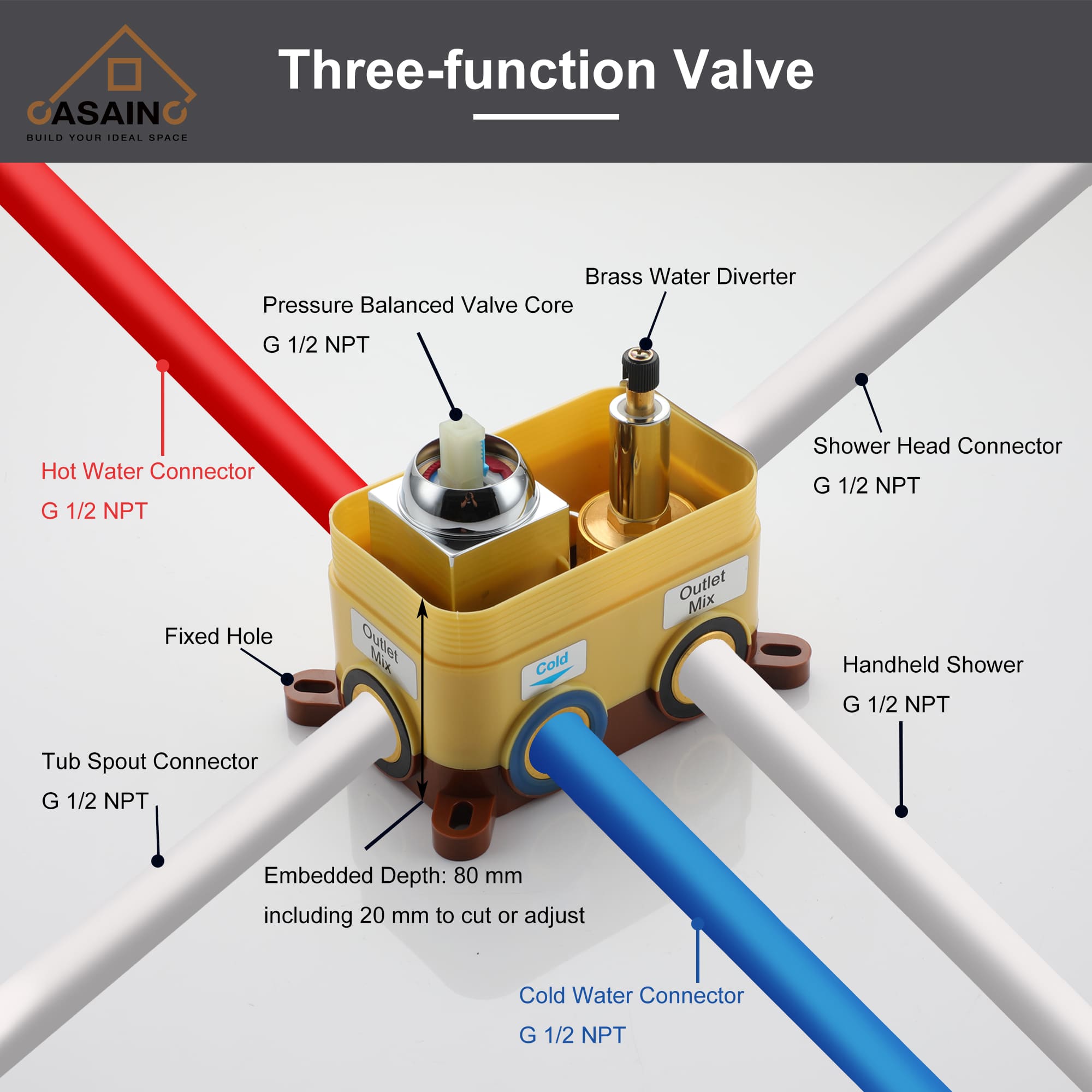 - CUPC Certified Pressure Balance Valve: Maintains stable water temperature, balances hot and cold supply, and helps prevent sudden scalding for safer daily use.