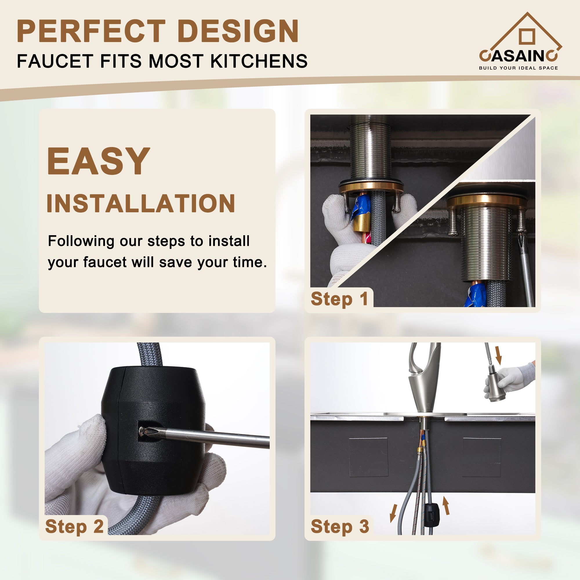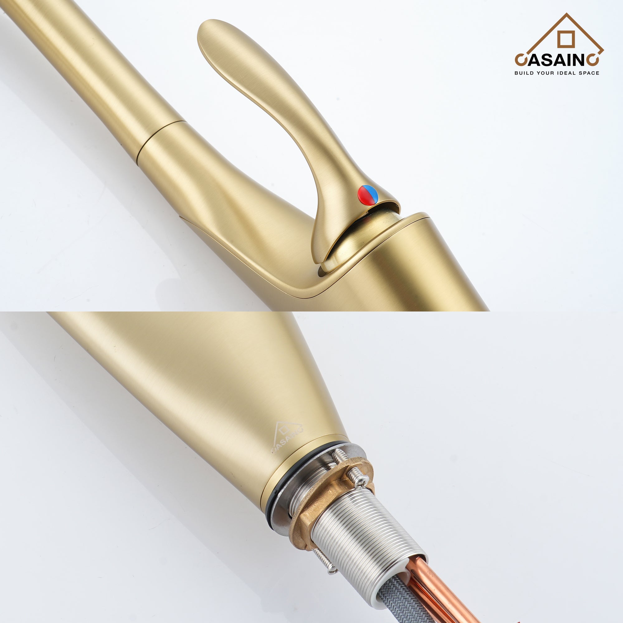 Fitting for various kitchen designs, the CASAINC Pull-Out kitchen faucet with a single handle has a timeless look. The spout can be rotated 360 degrees smoothly to allow kitchen tasks to be done with ease. With three colors to choose from, the spot-resistant finish will add elegance and charm to your kitchen.