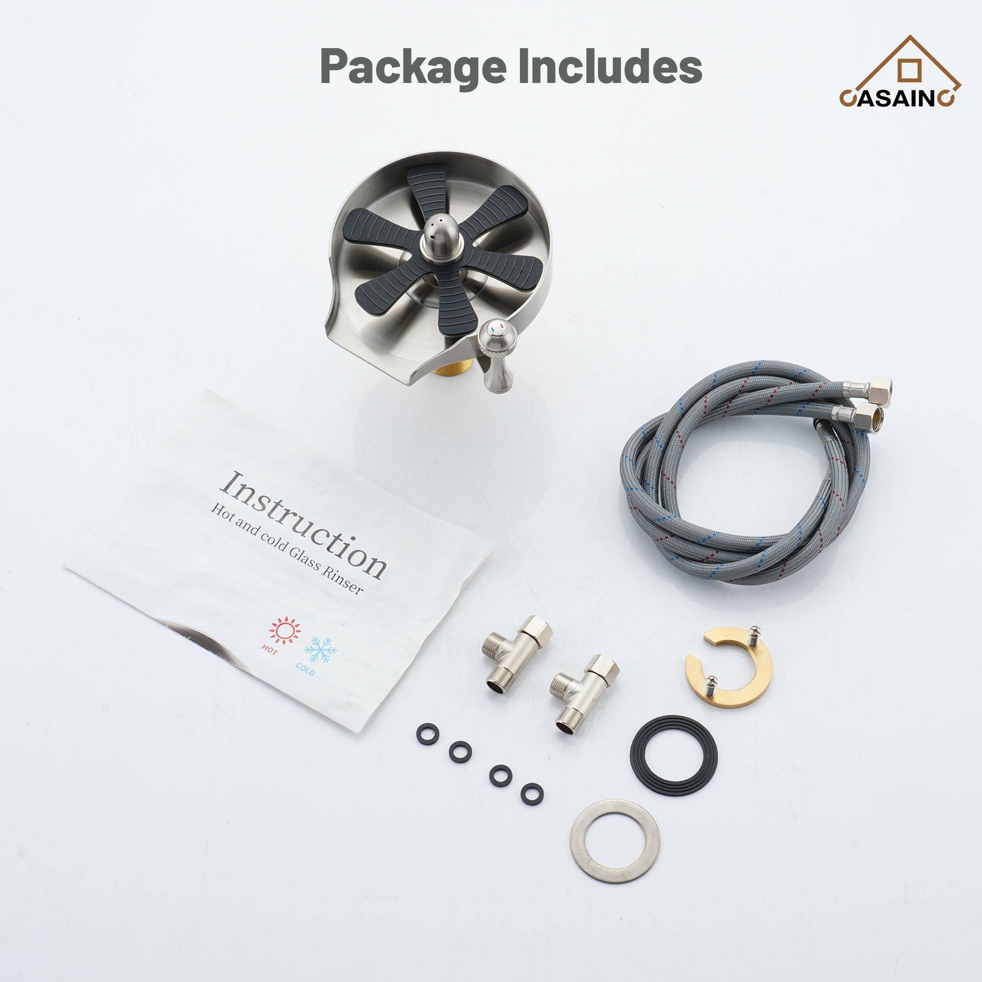 Unlike other styles on the market, The CASAINC Glass Rinser is designed to meet your needs for cleaning a variety of cups. It offers hot and cold water options to keep your hands free from freezing in the winter. This glass rinser for kitchen sink thoroughly rinses residue in seconds with high-pressure water jets that reach where you can't. It fits most drinkware, from drinking cups to wine glasses to mugs, so you avoid soaking and scrubbing.