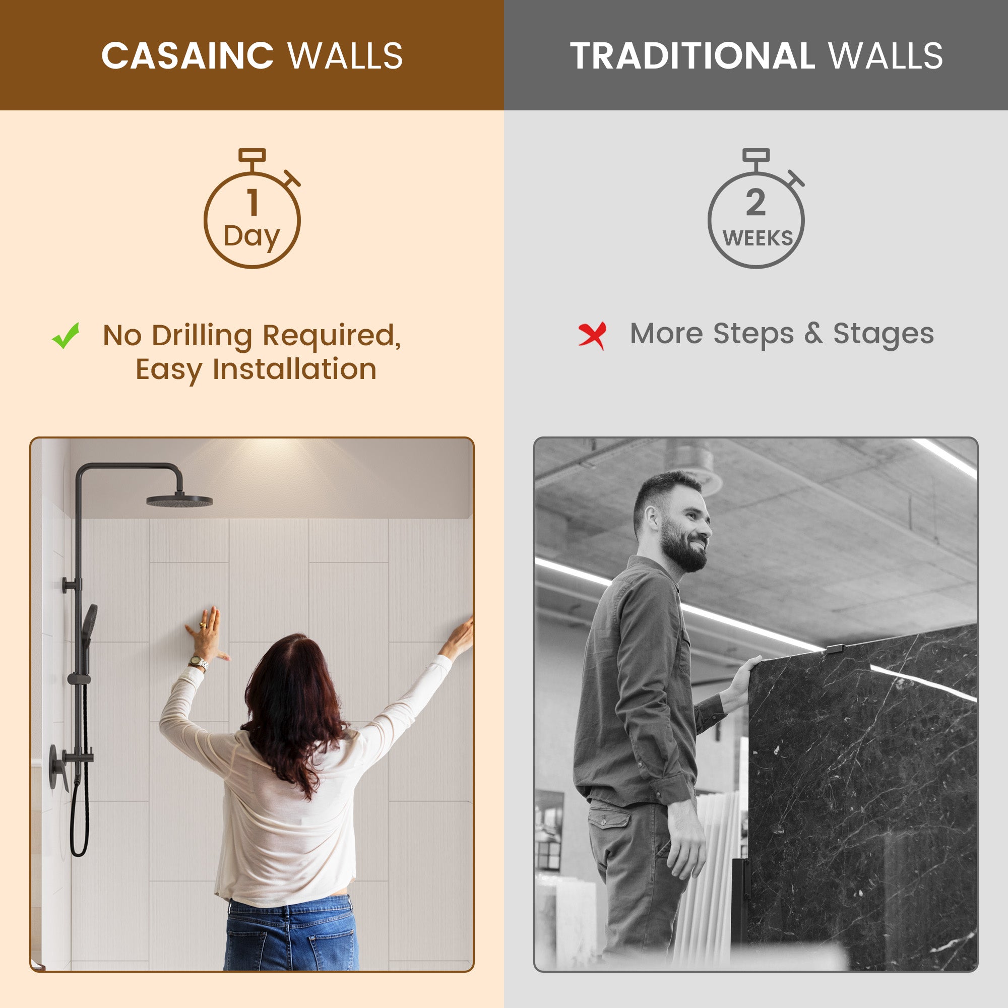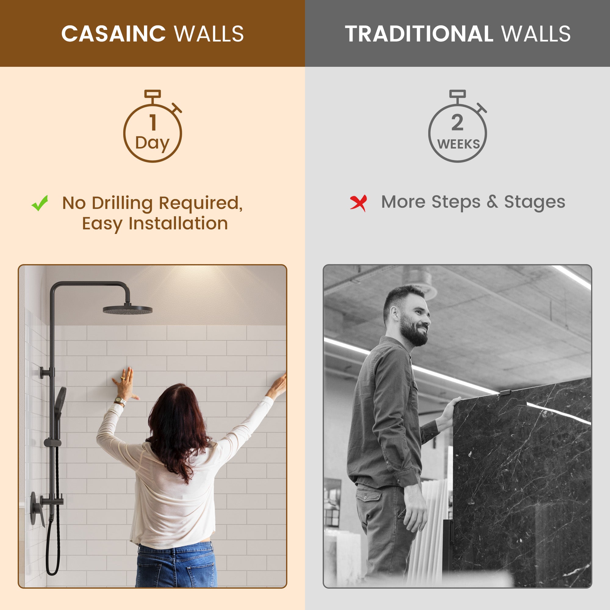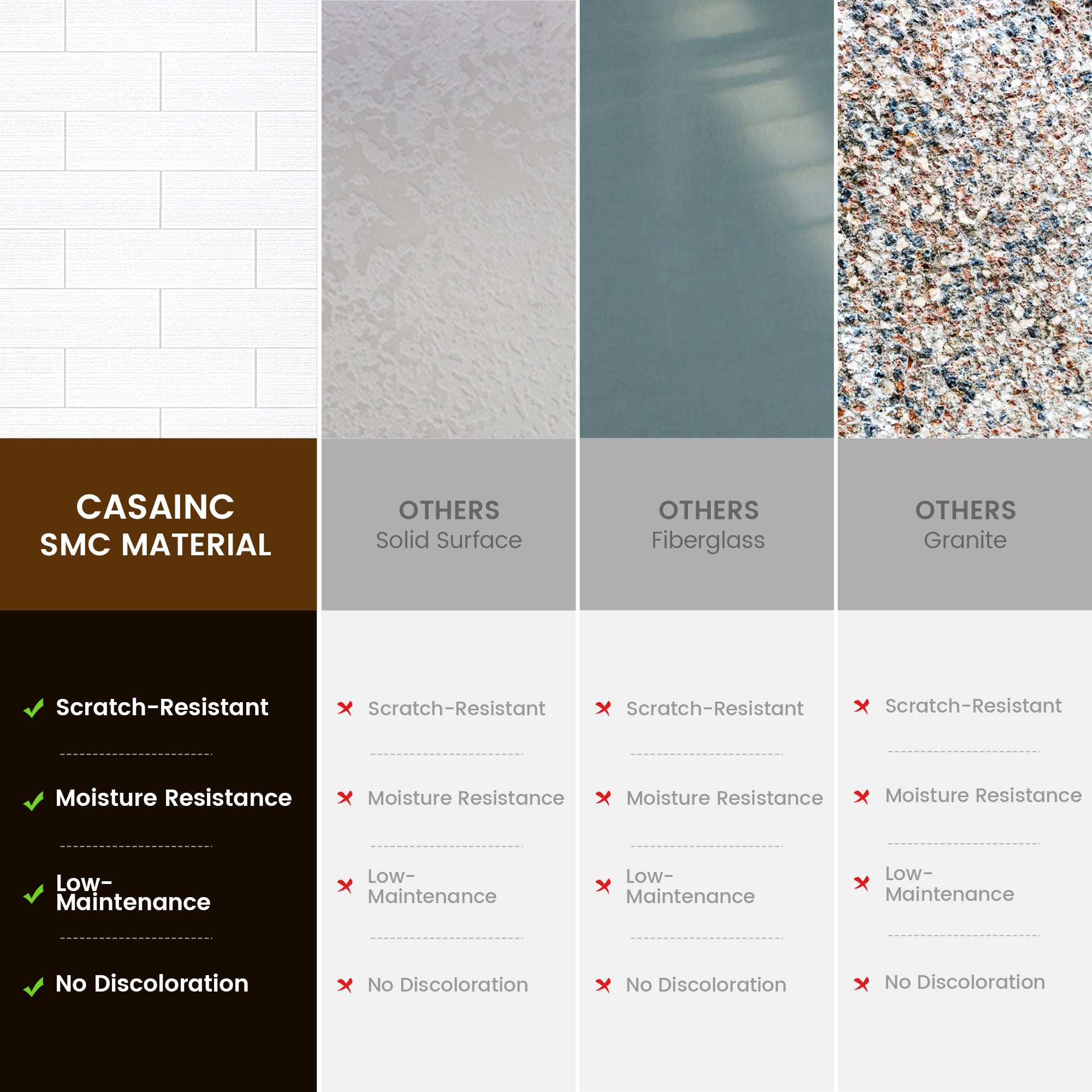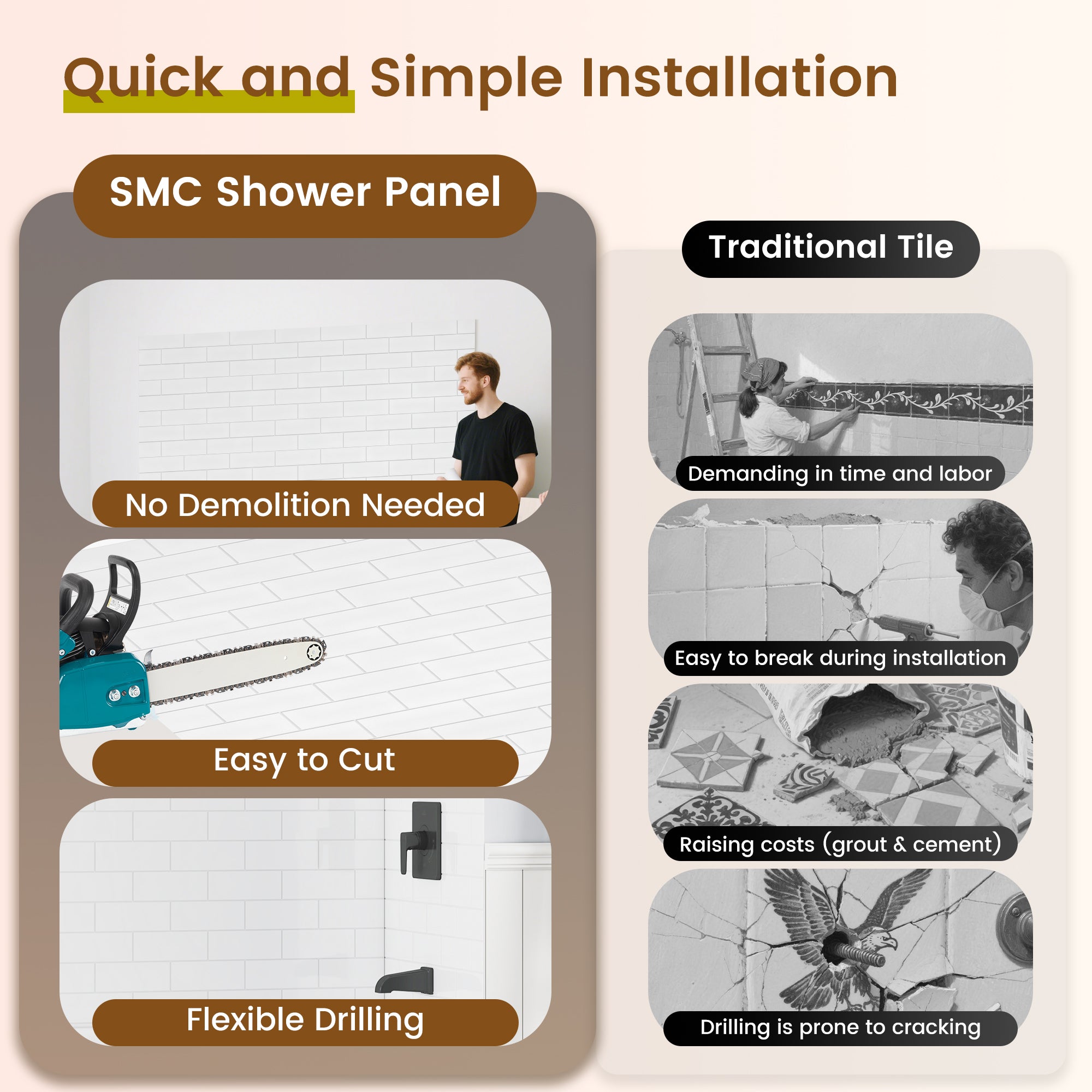 Revamp your shower space with Casainc's SMC shower wall, designed to provide a modern, stylish alternative to traditional tiles. With its sleek brick grid pattern, this waterproof shower wall is easy to install, incredibly durable, and low-maintenance, ensuring a perfect fit for any bathroom. Experience a stain-resistant and long-lasting surface that transforms your shower or bathtub area effortlessly.