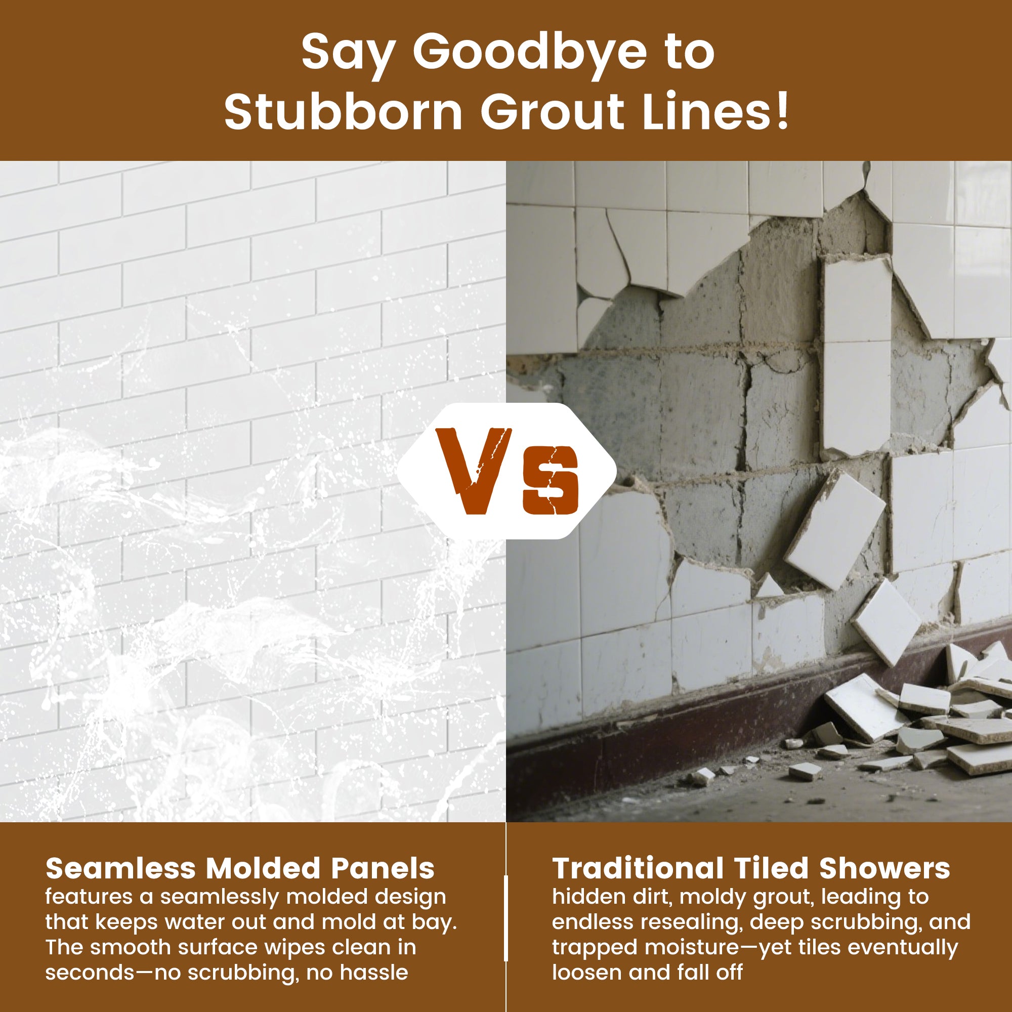 - Unmatched Durability: The hard-coat surface is designed to withstand chips, stains, and peeling, offering a resilient, durable shower wall that lasts for years.